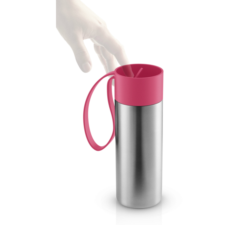 Стильный термос для прогулок по городу или долгих поездок. Крышка легко открывается и закрывается даже на хoду благодаря функциональному клапану, с которым легко справиться одной рукой. Двойные герметичные стенки долго сохраняют нужную температуру напитка. Практичный силиконовый ремешок - для того, чтобы термос было удобно носить. Можно мыть в посудомоечной машине.