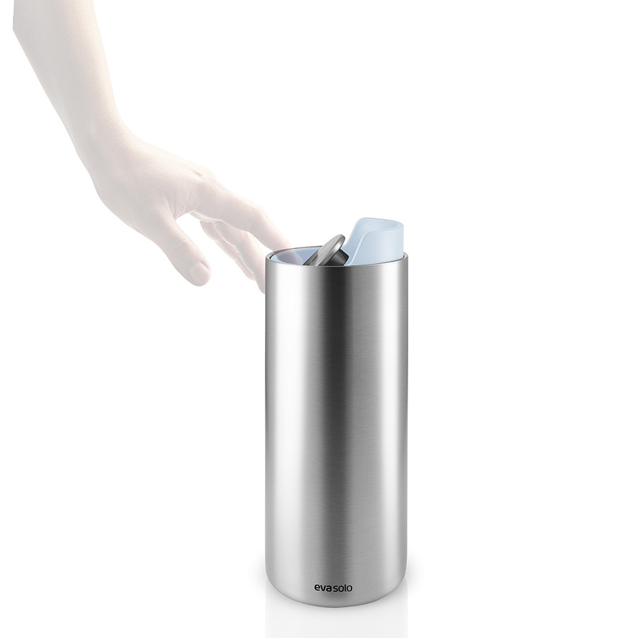 Корпус из нержавеющей стали с двумя вакуумными стенками долго сохраняет температуру горячих и холодных напитков. Термос легко открывать одним нажатием, что очень удобно во время работы или за рулем.