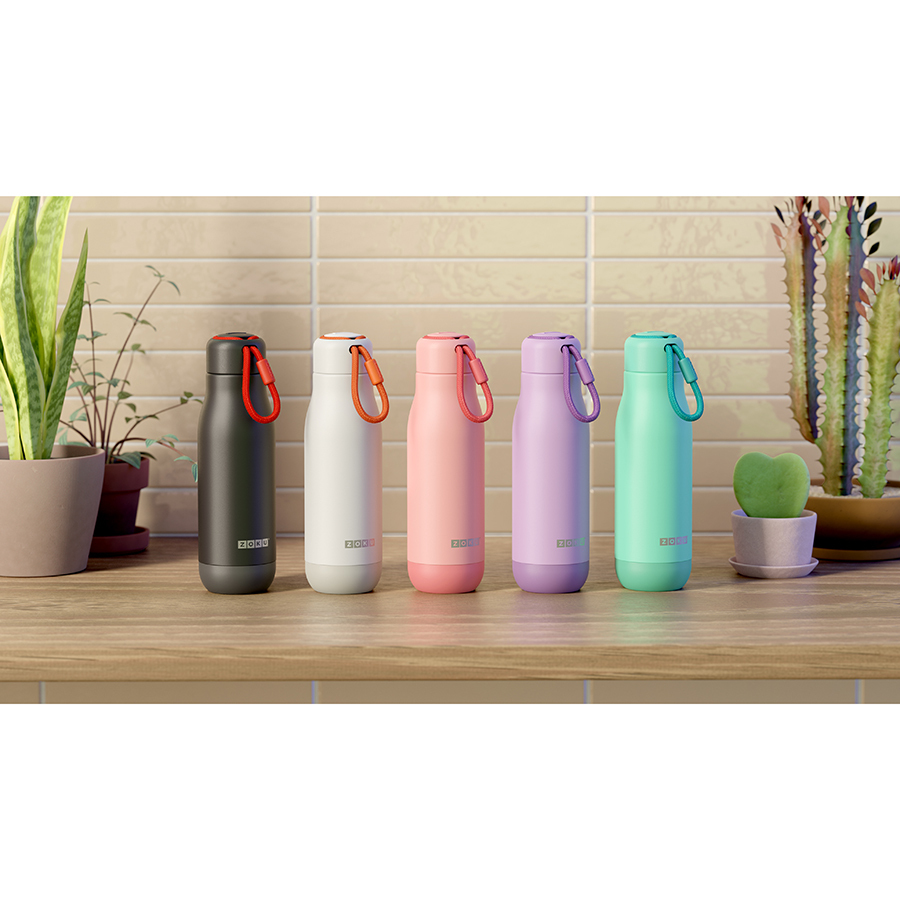 Вакуумная изоляция сохраняет температуру холодных напитков до 40 часов и горячих – до 12. Толстая нержавеющая ставь 18/8 обеспечивает защиту от повреждений. Съемный шнурок обеспечивает удобство при переноске. Порошковое покрытие делает корпус приятным на ощупь.