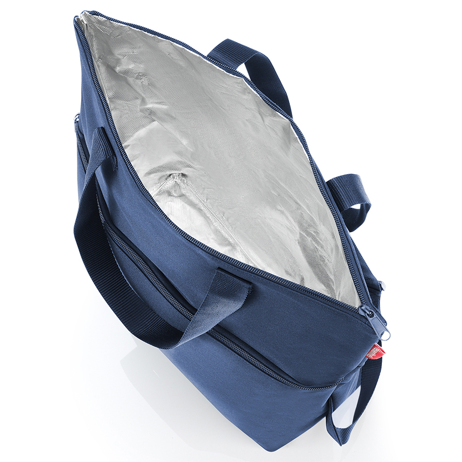 Внутри – термоизоляционный материал, который сохранит продукты в прохладе. Дополнительный внешний карман застегивается на молнию. 2 ручки можно использовать как лямки рюкзака. Тепловая изоляция выполнена из высококачественной алюминиевой фольги. Материал – прочный водоотталкивающий полиэстер. Объем – 18 л.