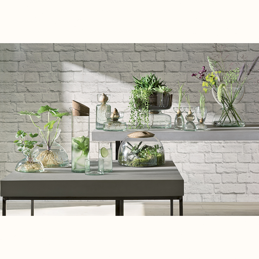 Ваза-кашпо Canopy создана в партнерстве с проектом Eden. Емкость выполнена вручную из 100% переработанного стекла и имеет специальную форму, что позволяет использовать ее не только для цветов, но даже для выращивания лука. Дизайн спроектирован таким образом, чтобы в верхней части находилась луковица, а корни располагались в воде внизу. Эта ваза стала лауретом премий iF Design Award и Green GOOD DESIGN Award.