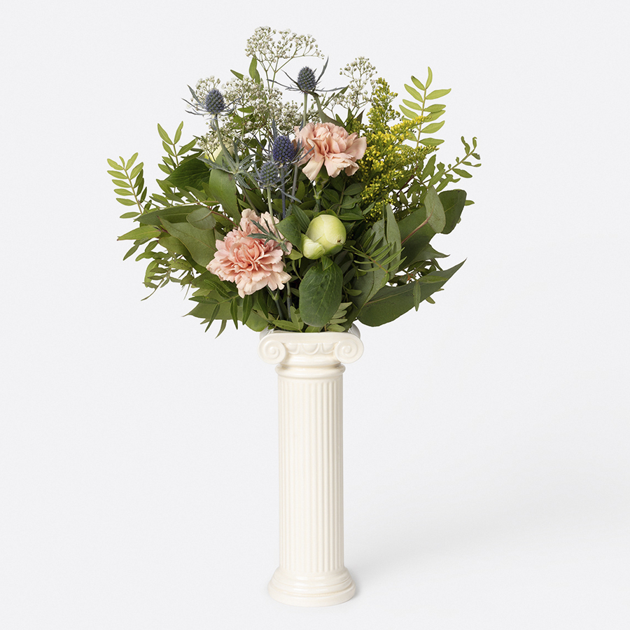 Керамическая ваза в форме ионической колонны Athena – стильный аксессуар, способный добавить благородства и аристократичности в интерьер любого помещения. В ней будут замечательно смотреться как садовые, так и простые полевые цветы. За счет уникального дизайна изделие может использоваться и как самостоятельный элемент декора.