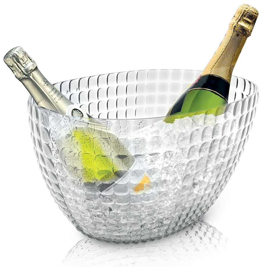 Мойка в посудомоечной машине: нет Ведерко для шампанского Tiffany отличается оригинальной рельефной формой, которая в сочетании с прозрачным материалом делает поверхность сверкающей и переливающейся на свету. Емкость представляет собой расширяющийся кверху овал и может вместить сразу две бутылки белого вина. За счет прямого и ровного края ведерко не треснет, если бутылка ударится о его стенку. Изготовлено из высококачественного пластика.