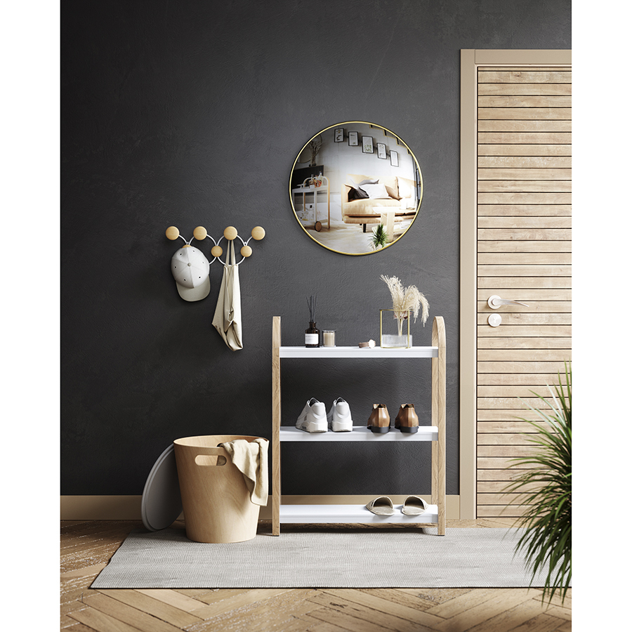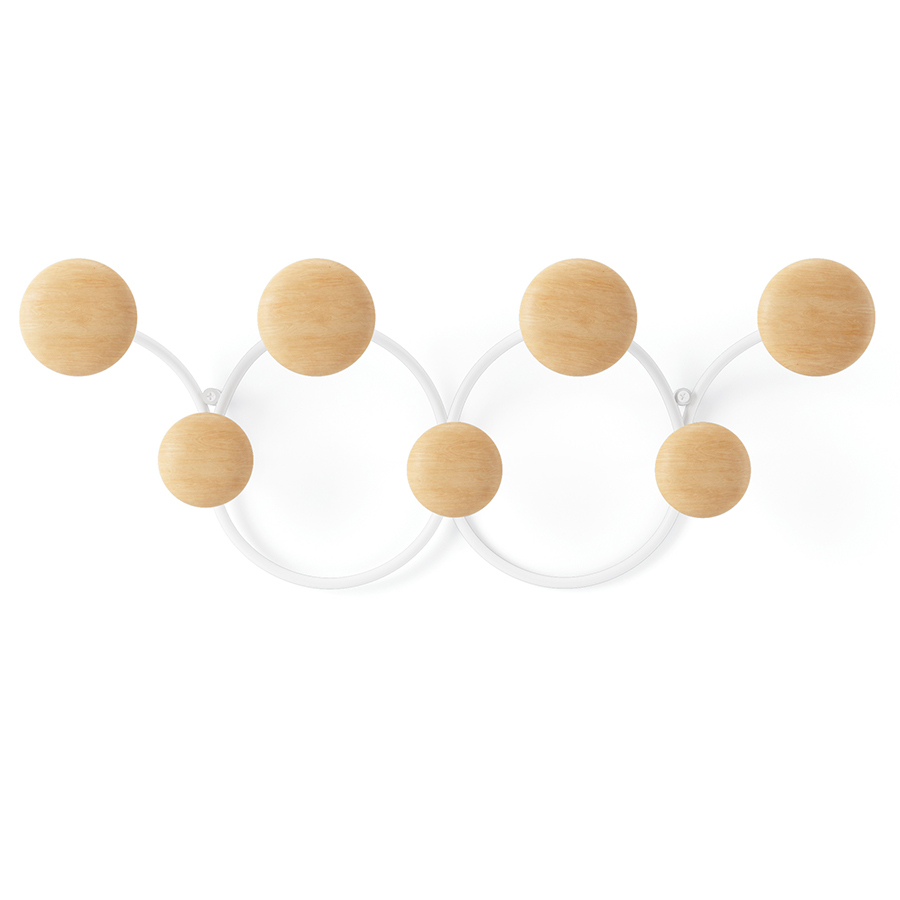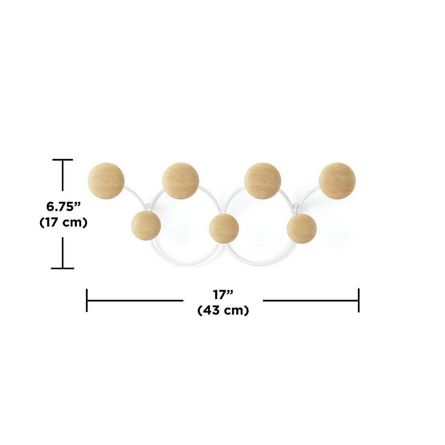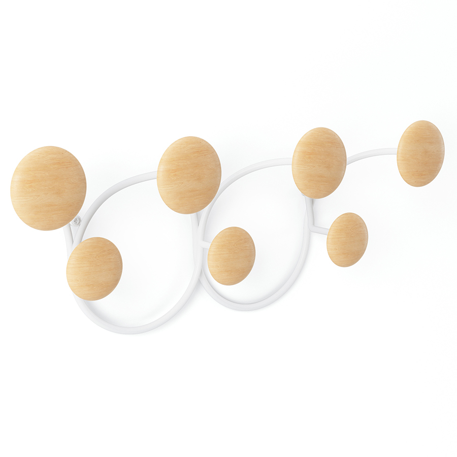 Вешалка для одежды Dotsy – стильное и практичное решение для современной прихожей. Прочное стальное основание обеспечивает изделию надежность и долговечность. Крючки из древесины сосны округлой формы с гладкой поверхностью исключают случайное повреждение одежды, выдерживают нагрузку до 2,3 кг каждый. Сочетание дерева и металла органично вписывается в различные варианты оформления интерьера. Конструкция крепится к стене на два шурупа.