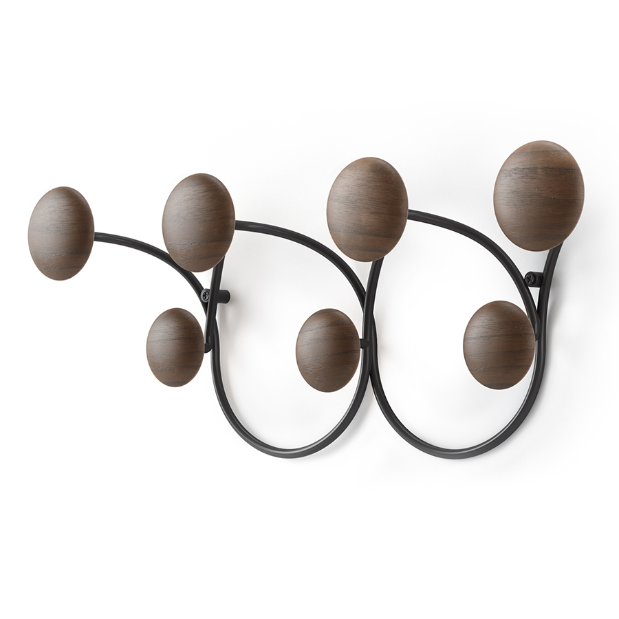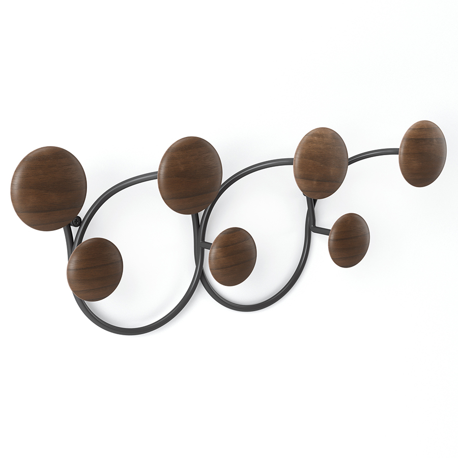 Вешалка для одежды Dotsy – стильное и практичное решение для современной прихожей. Прочное стальное основание обеспечивает изделию надежность и долговечность. Крючки из древесины сосны округлой формы с гладкой поверхностью исключают случайное повреждение одежды, выдерживают нагрузку до 2,3 кг каждый. Сочетание дерева и металла органично вписывается в различные варианты оформления интерьера. Конструкция крепится к стене на два шурупа.