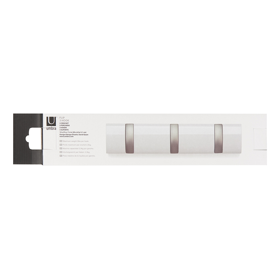 Вешалка имеет 3 откидных крючка из никеля: когда они не используются, их можно легко сложить. Каждый крючок выдерживает нагрузку до 2,3 кг. Вешалка поставляется с подробной инструкцией по установке и необходимым монтажным оборудованием.
