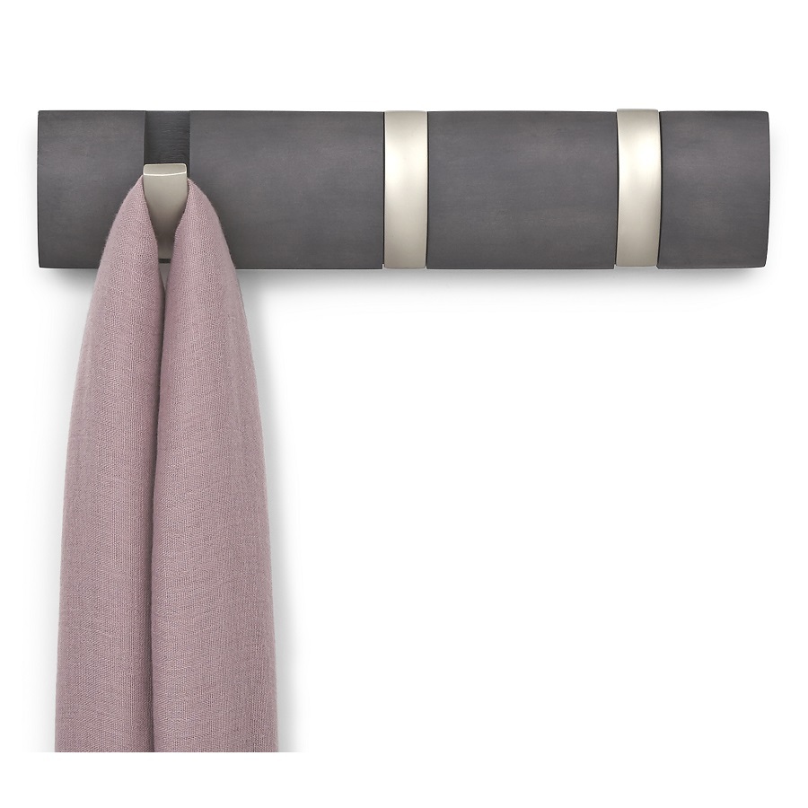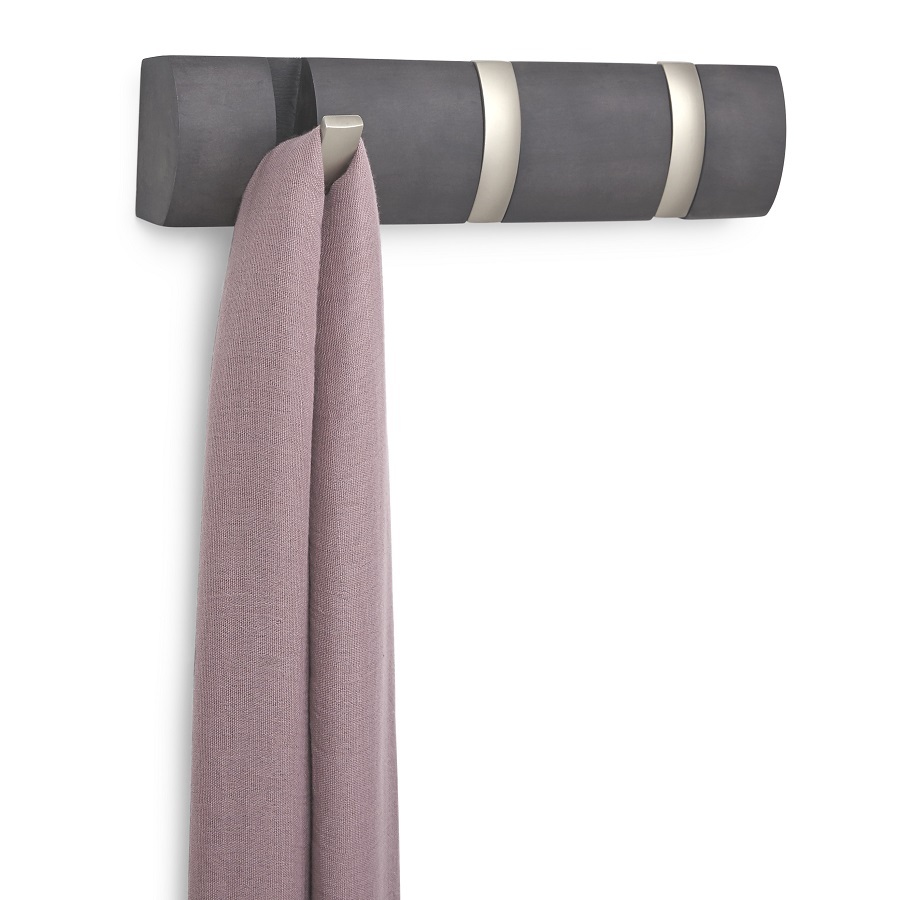 Вешалка имеет 3 откидных крючка из никеля: когда они не используются, их можно легко сложить. Каждый крючок выдерживает вес до 2,3 кг. Поставляется с подробной инструкцией по установке и необходимым монтажным оборудованием.
