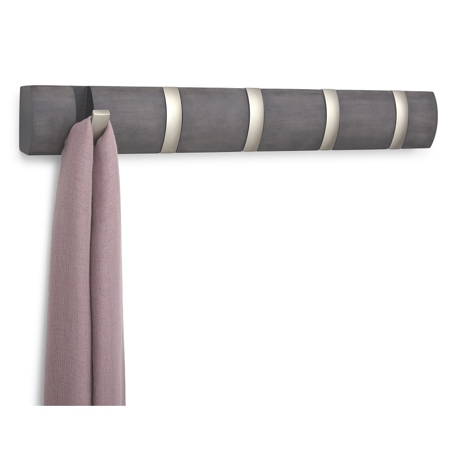 Вешалка имеет 5 откидных крючков из никеля: когда они не используются, их можно легко сложить. Каждый крючок выдерживает вес до 2,3 кг. Поставляется с подробной инструкцией по установке и необходимым монтажным оборудованием.