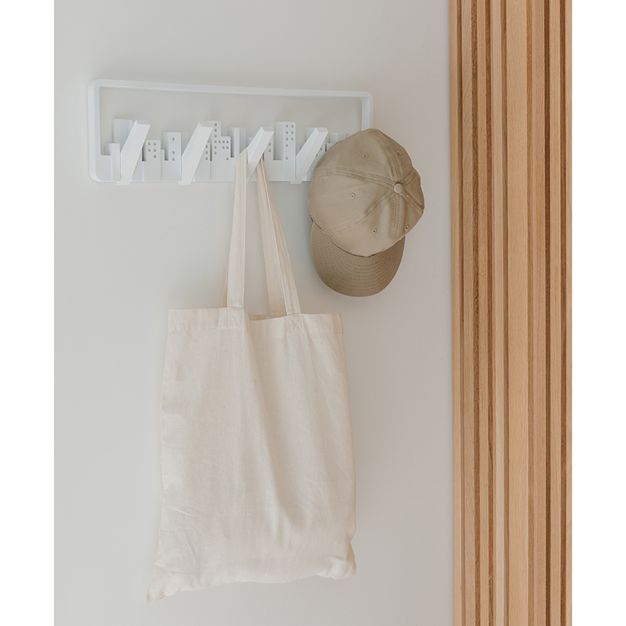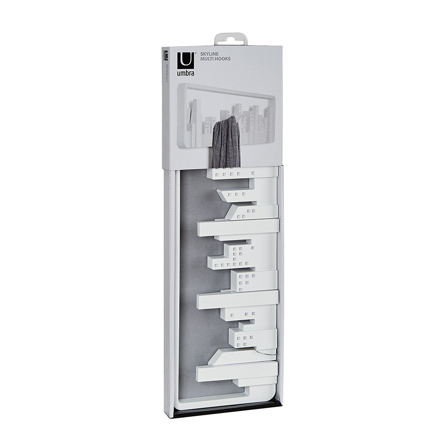Настенная вешалка Skyline торговой марки Umbra сочетает в себе функциональность и простоту форм. Оригинальное исполнение изделия – это заслуга креативных дизайнеров Хелены Т. Миллер и Трейси Вонг. Вешалка представлена в виде городского пейзажа с многоэтажными домами.