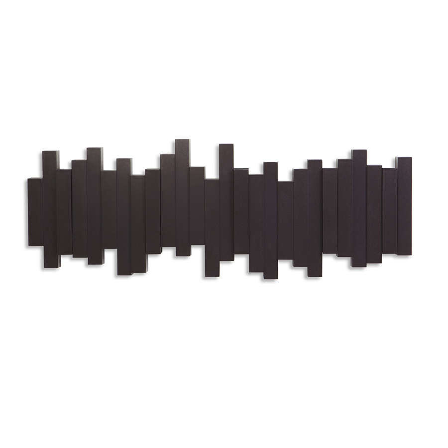 5 прочных крючков при необходимости складываются, превращая вешалку в декоративный элемент. Каждый крючок выдерживает вес до 2,26 кг.