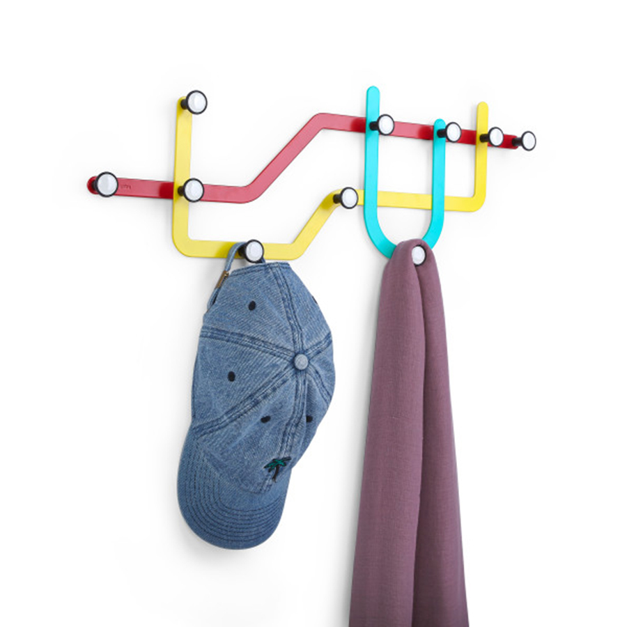 Вешалка Subway канадского бренда Umbra поможет в обустройстве прихожей или офисного пространства. Идея создания яркого и функционального приспособления для хранения одежды и аксессуаров принадлежит известному дизайнеру Алану Вишневскому. Вешалка выполнена из прочной стали с порошковым покрытием. Металл устойчив к высоким нагрузкам и воздействию влаги. Вешалка имеет 10 эргономичных крючков для хранения верхней одежды, зонтов, сумок и прочих аксессуаров. Материал: металл. Размеры: 57,5х6х20,5 см.