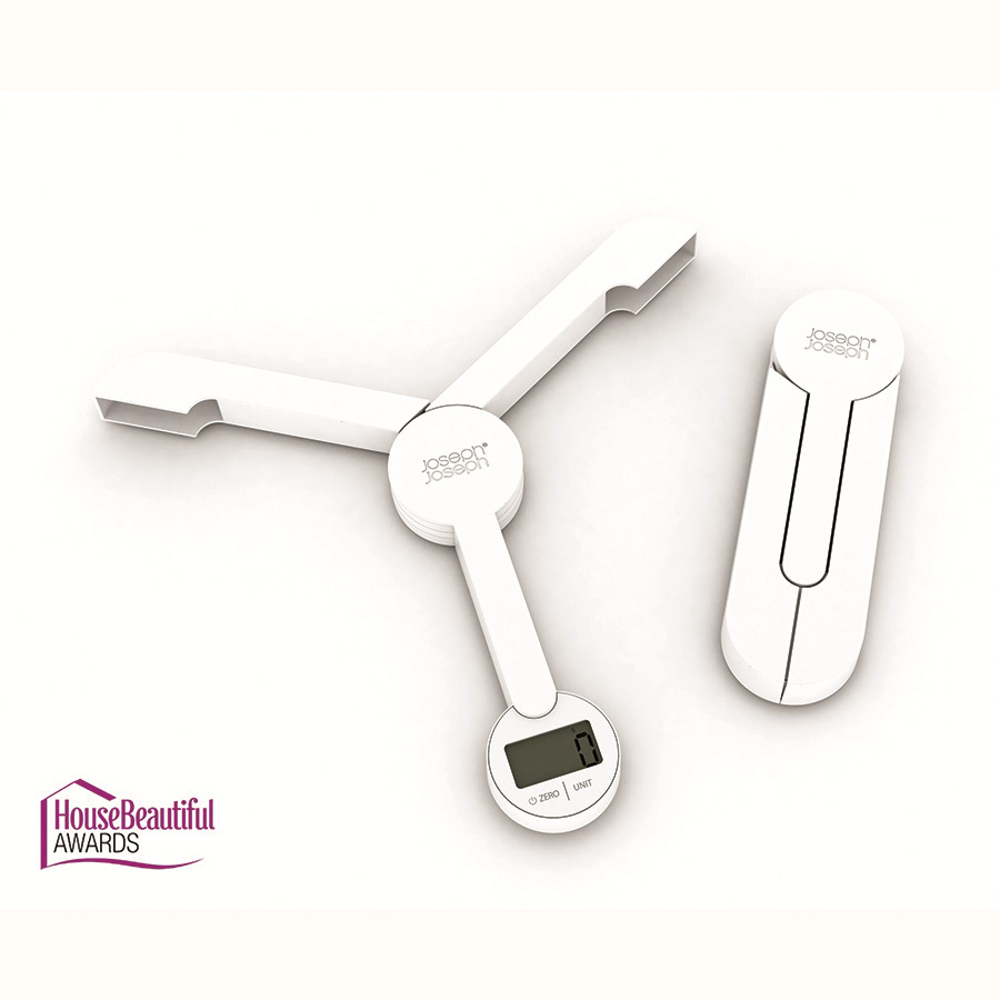 В разложенном виде три рукоятки формируют устойчивую платформу, на которой можно взвешивать емкости с ингредиентами. А после применения устройство складывается до супер-компактного размера. Дисплей и панель управления при этом закрываются внутри корпуса, благодаря чему весы можно спокойно хранить весы в кухонном ящике, не боясь повреждений. Устройство оснащено четким ЖК-дисплеем, сенсорной панелью управления и функцией автоматического выключения. Удобная функция добавления веса позволяет одновременно измерять в одной емкости по несколько разных ингредиентов.