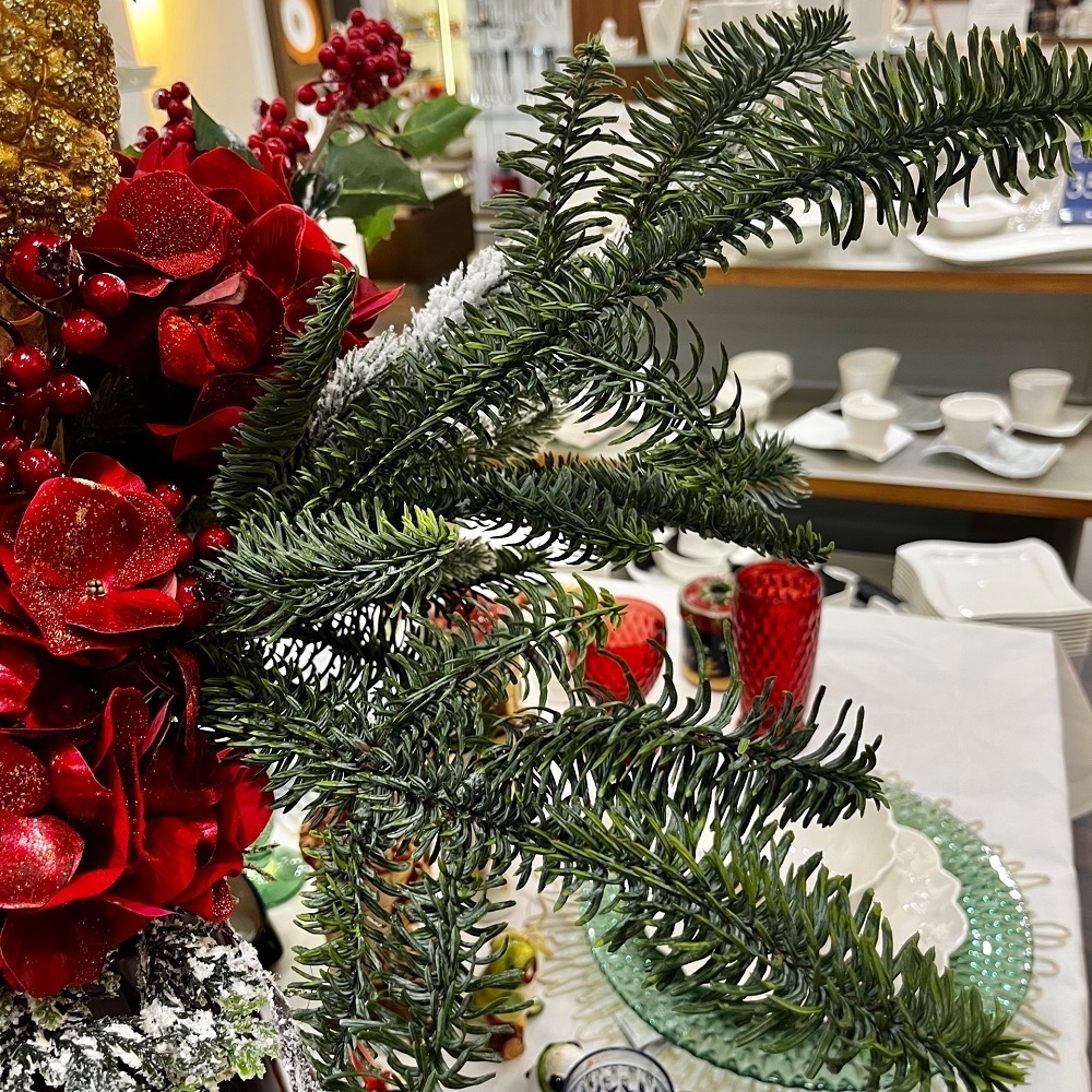Подготовка к Новому году - отличное время для реализации своего дизайнерского таланта. Используйте изящную сосновую ветку как основу для праздничной композиции. Хвоя естественного зелёного оттенка прекрасно сочетается с гирляндами, бусами и другими ёлочными украшениями.