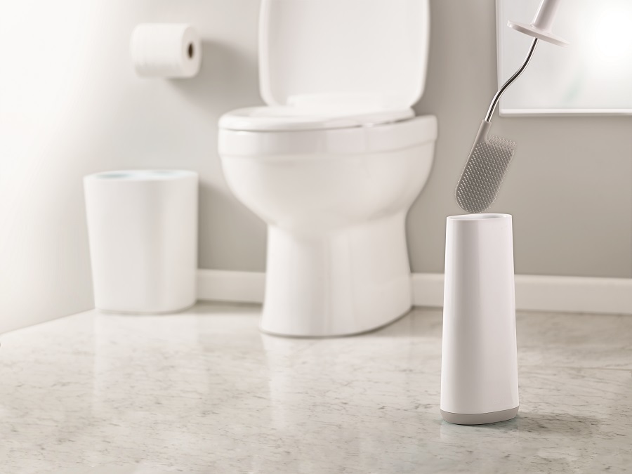 Инновационный аксессуар, который решает все проблемы поддержания чистоты и порядка санузла. Он был создан с учётом всех минусов обычных ёршиков. Гибкая полимерная щетка эффективно очищает все труднодоступные места и не впитывает воду. Высокотехнологичный материал ёршика не притягивает грязь и его легко мыть. Двухуровневая щетина с большим расстоянием между щетинками не дает грязи скапливаться. После уборки ёршик не надо стряхивать, пытаясь очистить и высушить, благодаря уникальному дизайну Flex™, вода быстро стекает со щетки и не оставляет лишних капель. При уборке с отбеливающими средствами стоит избегать его попадания на ручку из нержавеющей стали! Удобная и компактная подставка дополняет этот эргономичный аксессуар и не занимает много места. Ванная — одна из наиболее сложных для уборки комнат. Здесь вопрос экономии места особенно актуален. Для создания новых аксессуаров дизайнеры Joseph Joseph руководствовались принципами рационального использования пространства, эргономичностью и удобством сортировки.