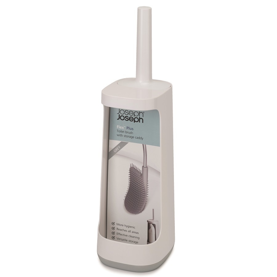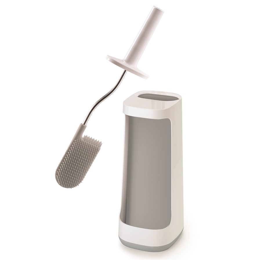 Инновационный аксессуар, который решает все проблемы поддержания чистоты и порядка санузла. Он был создан с учётом всех минусов обычных ёршиков. Теперь так просто поддерживать безупречную чистоту без лишних усилий! Гибкая полимерная щетка эффективно очищает все труднодоступные места и не впитывает воду. Высокотехнологичный материал ёршика не притягивает грязь и его легко мыть. Двухуровневая щетина с большим расстоянием между щетинками не дает грязи скапливаться. После уборки ёршик не надо стряхивать, пытаясь очистить и высушить, благодаря уникальному дизайну Flex™, вода быстро стекает со щетки и не оставляет лишних капель. Удобная и компактная подставка оснащена специальным многофункциональным отсеком, который можно использовать для хранения аэрозолей и моющих средств. Таким образом, они будут спрятаны от постороннего глаза, но останутся под рукой. При уборке с отбеливающими средствами стоит избегать его попадания на ручку из нержавеющей стали. Ванная — одна из наиболее сложных для уборки комнат. Здесь вопрос экономии места особенно актуален. Для создания новых аксессуаров дизайнеры Joseph Joseph руководствовались принципами рационального использования пространства, эргономичностью и удобством сортировки.