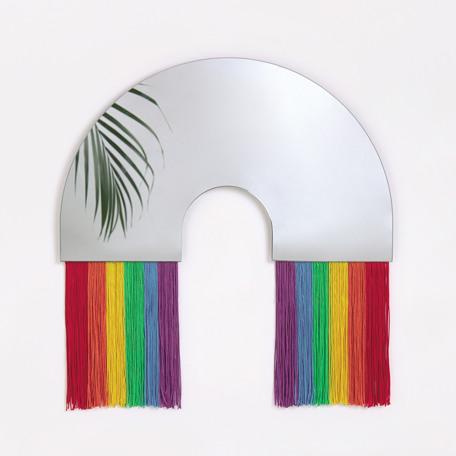 Настенное зеркало Rainbow с яркими тканевыми полосками станет оригинальным украшением современного интерьера. Аксессуар придаст дому красок и поднимет настроение даже в самый хмурый день! Идеально подходит для гостиной, спальни или детской. Его можно сочетать с зеркалом Rainbow размером 53х50 см.