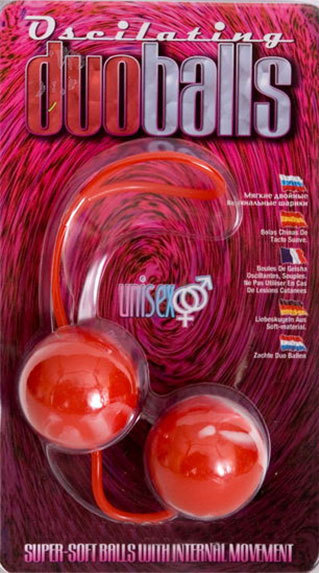 С этими пластиковыми шариками со смещенным центром тяжести освоить упражнения Кегеля будет проще простого. В результате регулярных тренировок (можно и вместе с любимым) женщина научится управлять каждой мышцей влагалища. Сексуальный партнер не останется равнодушным к силе внутренних объятий. Мягкие шарики с красивой бело-красной мраморной структурой со смещенным центром тяжести для тренировки мышц влагалища. Диаметр шариков 3,5 см, веревочка силиконовая.