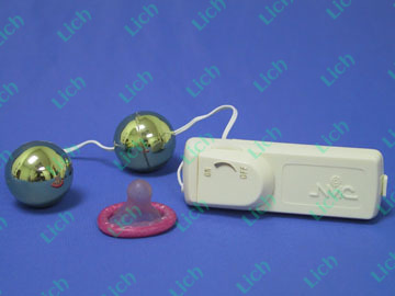 Вагинальные шарики с вибратором золотого цвета, диаметр 3 см.