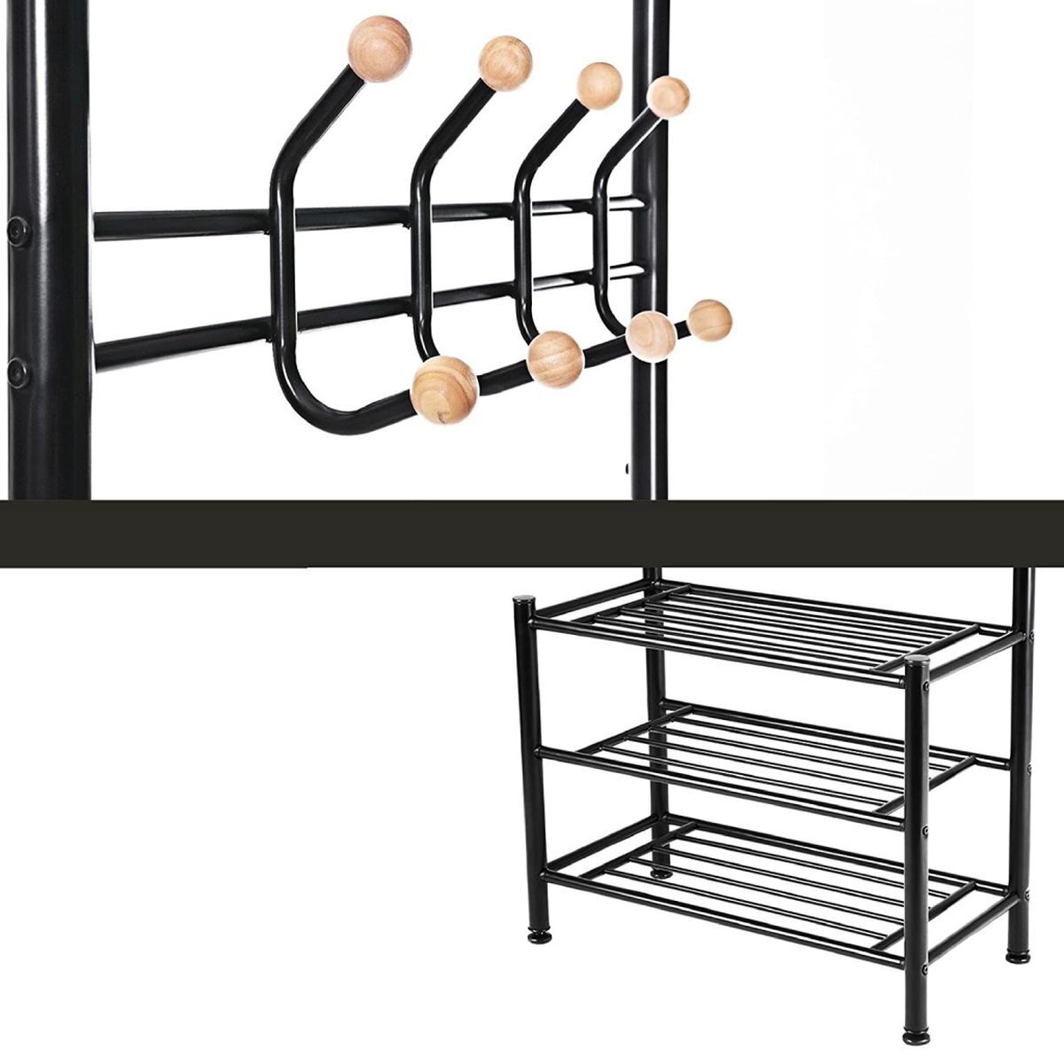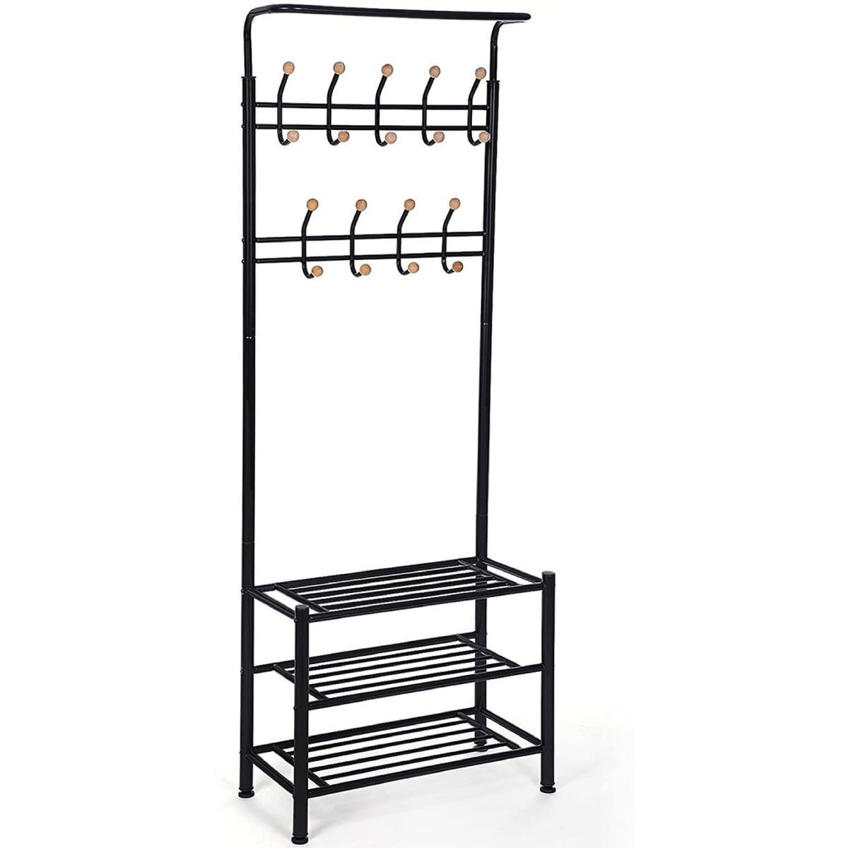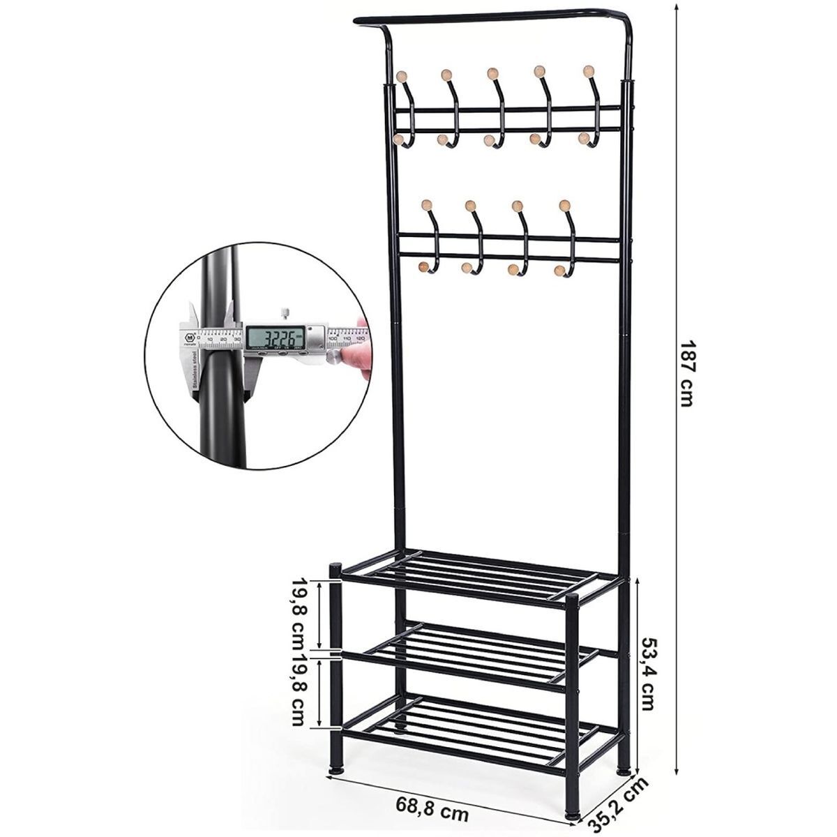 Вешалка для одежды имеет 18 крючков наверху для подвешивания курток, пальто, шарфов, ремней, сумок и т. д. На каждый крючок можно вешать до 5 кг.