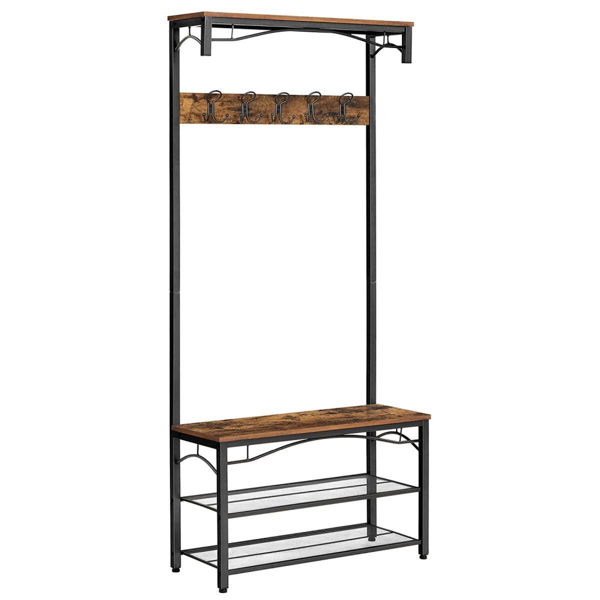 С помощью этой великолепной вешалки вы сможете избавиться от беспорядка в прихожей; сочетание четких линий и стиля лофт придаст ей современный и элегантный шарм. Это обувница, скамейка и вешалка в одном флаконе.