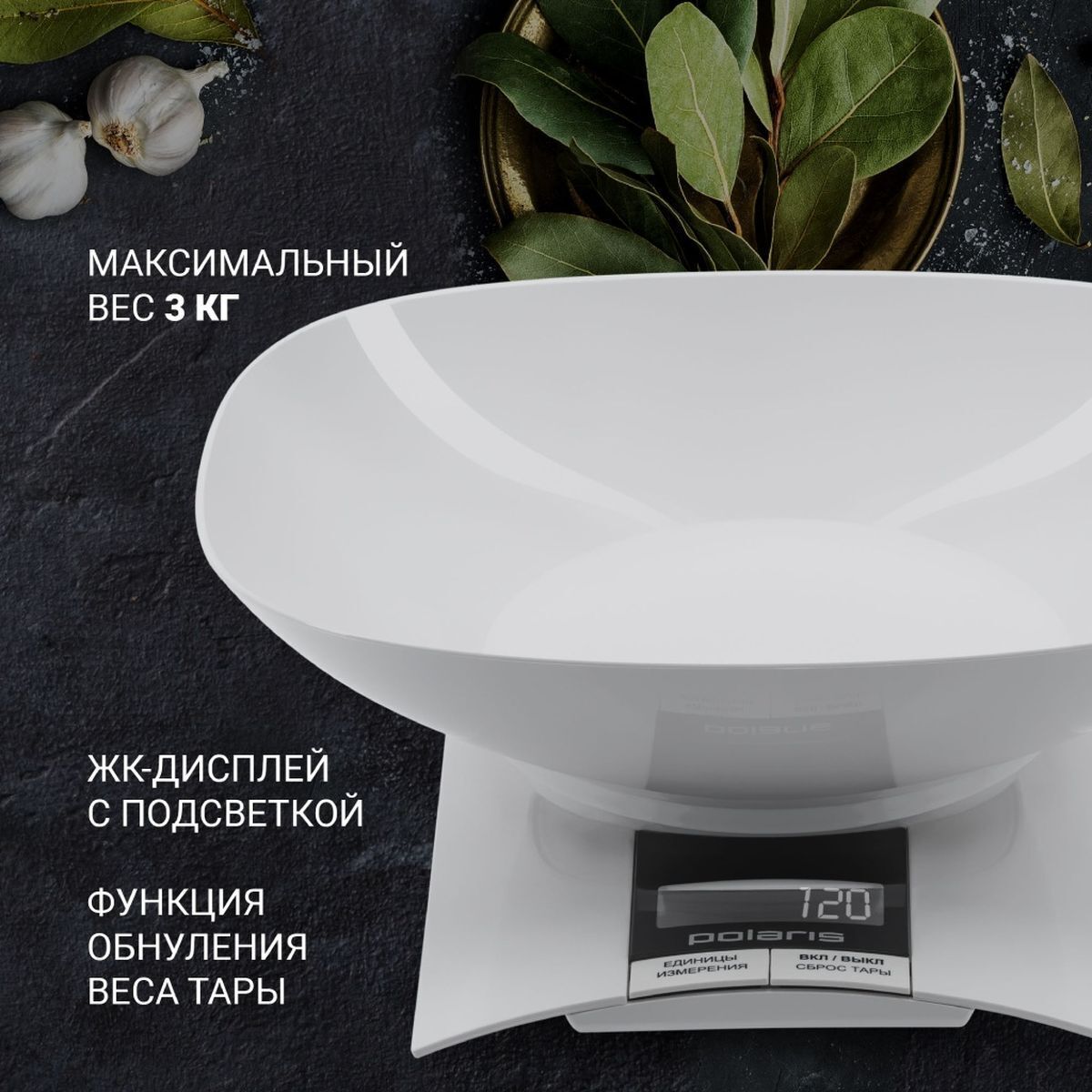 Кухонные весы Polaris PKS0323DL обладают высокой точностью измерений с ценой деления 1 г. Максимальный вес для измерений – 3 кг, чего вполне достаточно для кухонных работ. Этот бытовой прибор будет отлично смотреться на любой кухне и прекрасно справится со своими задачами, а его невысокая стоимость позволит сохранить семейный бюджет.