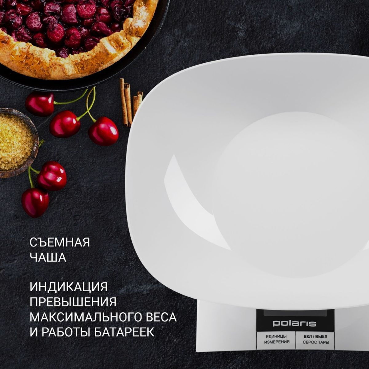 Элегантные кухонные весы Polaris PKS0323DL обладают корпусом приятного белого цвета, который будет уместен на любой современной кухне. В комплекте с весами идет чаша, сделанная из высокопрочного пластика. Весы работают от 2 батарей типа ААА, которые легко приобрести в любом магазине. Индикация заряда батареи подскажет, когда их необходимо заменить. Благодаря автоматическому отключению срок службы элементов питания увеличивается.