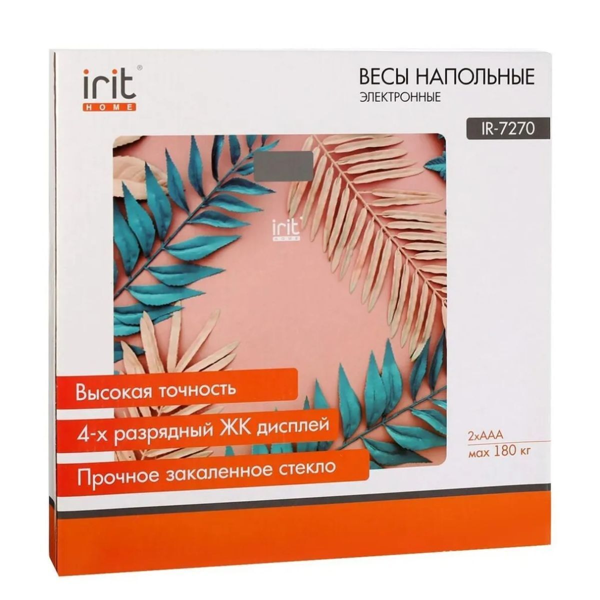 Весы Irit IR-7270 с электронной системой обеспечивают высокую точность измерения массы тела. Платформа из прочного закаленного стекла характеризуется стойкостью к повреждениям и украшена ярким рисунком. На платформе имеется ЖК-дисплей для просмотра сведений об измерениях. Максимально допустимая нагрузка составляет 180 кг.