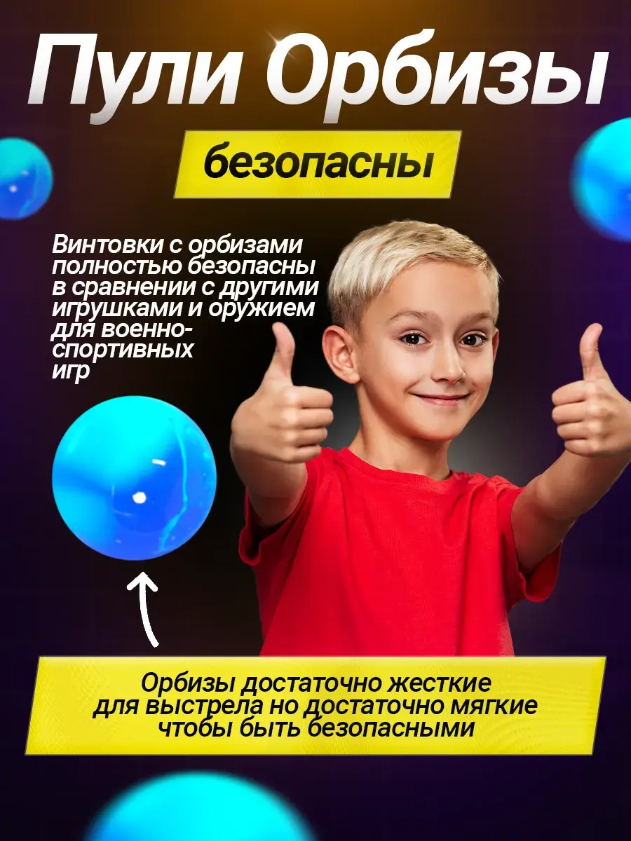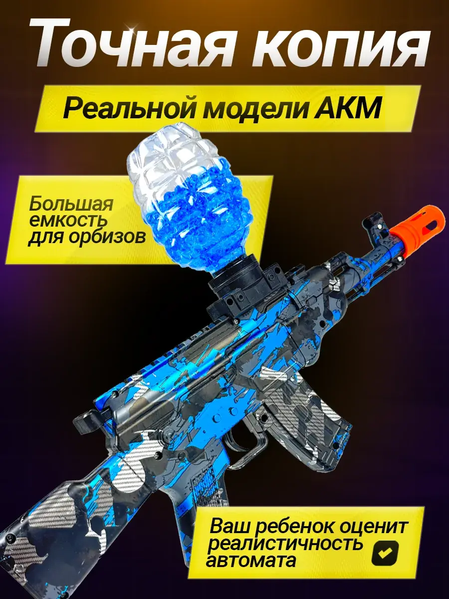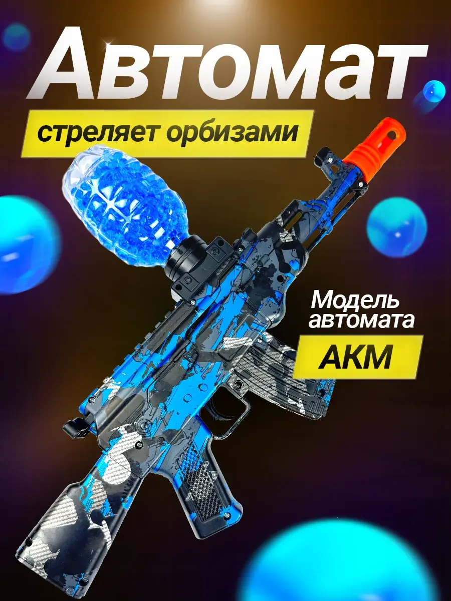 Представляем вашему вниманию новинку в мире игрушечного оружия – Автомат с орбизами. Наш детский автомат – это точная копия настоящей автоматической штурмовой винтовки АКМ. В качестве пуль у него используются безопасные мягкие гидрогелевые шарики орбизы (1000 штук в комплекте). Магазин у пистолета весьма внушителен и позволяет зарядить много пулек одновременно.