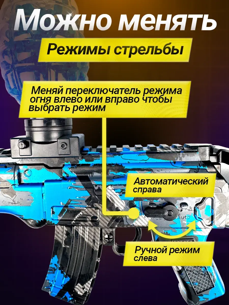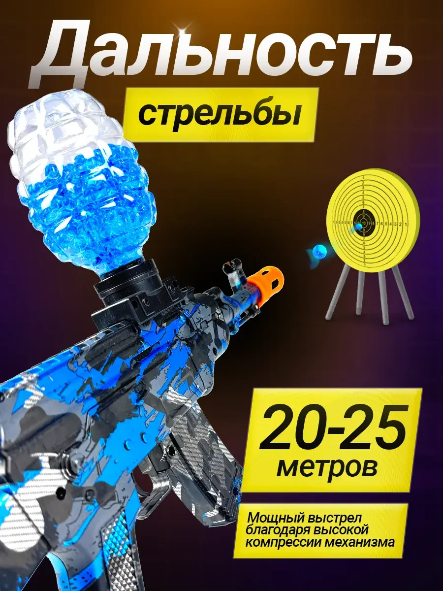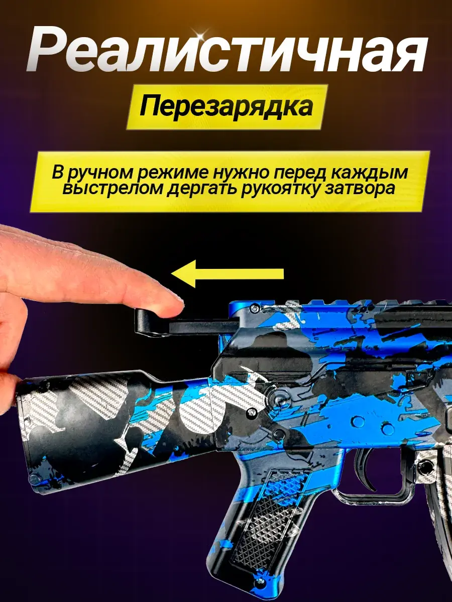 Гидрогелевый автомат стреляет арбизами благодаря надежной системе с электрическим механизмом с мощным аккумулятором. Орбизный пулемет имеет два режима стрельбы: автоматический и одиночными патронами, что позволяет разнообразить игру. Дальность стрельбы АК 47 достигает 10-15 метров.