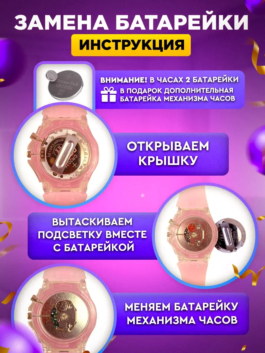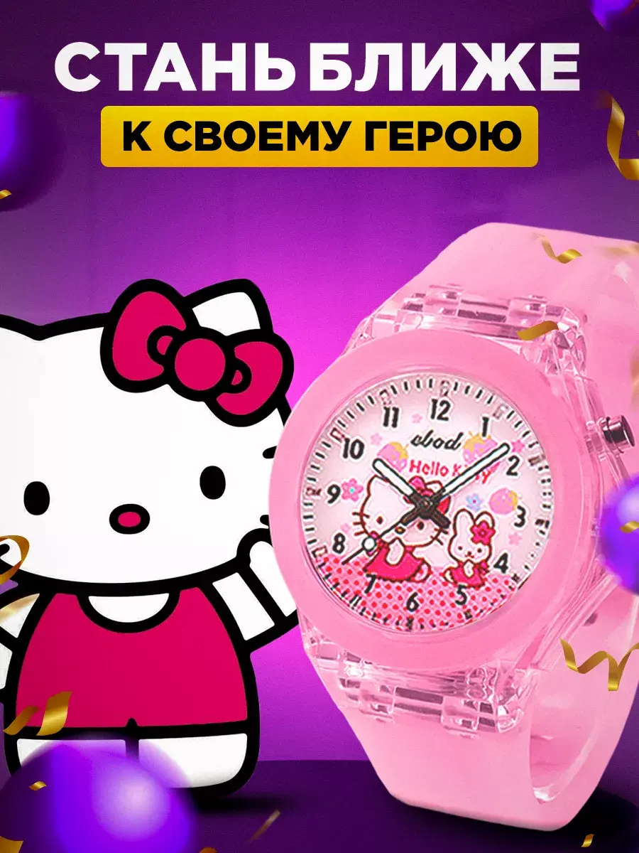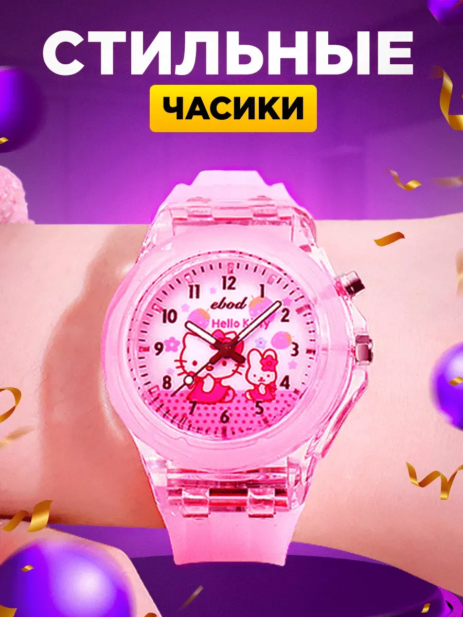 Яркие детские наручные часы - модный аксессуар для девочек с важным функциональным предназначением. Благодаря наличию такого типа часов ребенок научится смотреть слушать тик так распознавать время планировать свои дела. Учебные ходики на руку кварцевые не электронные на батарейках представлены с рисунком – любимые герои из мультиков мимимишные мордашки Хелло Китти. Красивые со стрелками с качественным механизмом прочным гипоаллергенным силиконовым браслетом - классика которая всегда в тренде. Стильные модные пластиковые часики и ремешки оснащены LED - подсветкой как ручные украшения подходят для ежедневной носки. Если знакомство с часами для ребенка еще рано малыши оценят их как игрушка светящаяся в темноте. Диаметр циферблата с арабскими цифрами защищен прочным акриловым стеклом, а ремень с регулируемой по длине застежкой обеспечивает комфортное ношение исключая их потерю идеально для школьников подростков занятий спортом бег велосипед фитнес. Корпус детских часов для девочки круглой формы мигает переливается разными цветами, картинки hello kitty не оставят равнодушными самых маленьких и старше. Наличие минутной секундной стрелок пробуждает интерес к течению времени. Прозрачные светодиодные часики дети с радостью возьмут с собой в детский сад школу во двор на прогулку уличные обычные игры создав модный образ. Спортивные можно использовать как походные для туризма – большой экран крупные цифры делают использование легким приятным. Отличный подарок от бренда DinoShop дочке 6 лет сестре внучке на любой праздник года день рождения 8 лет первый юбилей и др. В наборе идет подарочная коробка для создания праздничной обстановки. Качественная стильная вещь станет любимым аксессуаром малышки.