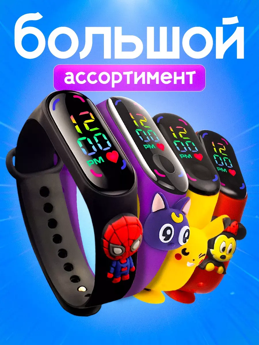 Детские наручные часы для девочек и мальчиков с сенсорным управлением от бренда DinoShop стильный полезный аксессуар. Электронные часы на руку с цифровым циферблатом, на дисплее отображает время минуты арабскими цифрами в 12 часовом формате дату секундомер с помощью нажатия сенсорной кнопки. Оригинальный влагостойкий ремешок создан из безопасного гипоаллергенного силикона с надежной металлической застежкой без проблем регулируется по длине с помощью отверстий на запястье ручки ребенка и исключает их потерю. Это противоударный устойчивый к влаге аксессуар, который в отличие от обычных часов можно мыть не нужно заряжать (на батарейках). Овальные силиконовые браслеты электронных часов наручных подходят для Mi Band. Любимый супер герой из команды мультиков Сейлормун, форма которого украшает ремень подарит радость вашему ребенку. Ручные часики мордашки мордашки Симба как игрушечные развлекут маленьких малышей, если знакомство с часами еще рано. Популярная модель версии 2.0 идеальна для дошкольников школьников младших классов а также для подростков которые хотят выглядеть стильно каждый день. Спортивные походные детские часы для девочки подойдут для активного отдыха - бег фитнес туризм или повседневной носки дома учебы в школе. Классические умные часы Сейлор Мун ударопрочные не боятся брызг воды. Универсальные необычные украшения с водонепроницаемым корпусом - отличный подарок для детей девочке подростку которые дополнят модный современный образ на прогулке на велосипеде самокате. Самый красивый сувенир с рисунком в виде кошки станет приятным подарком дочери, сестре, племяннице на праздник года день рождения выпускной ученику 1 класс, 8 марта и др.