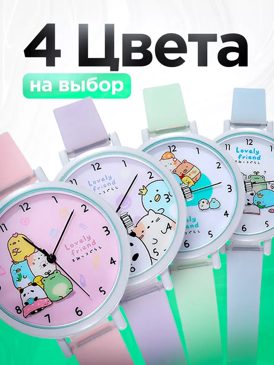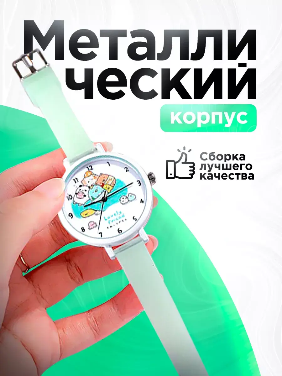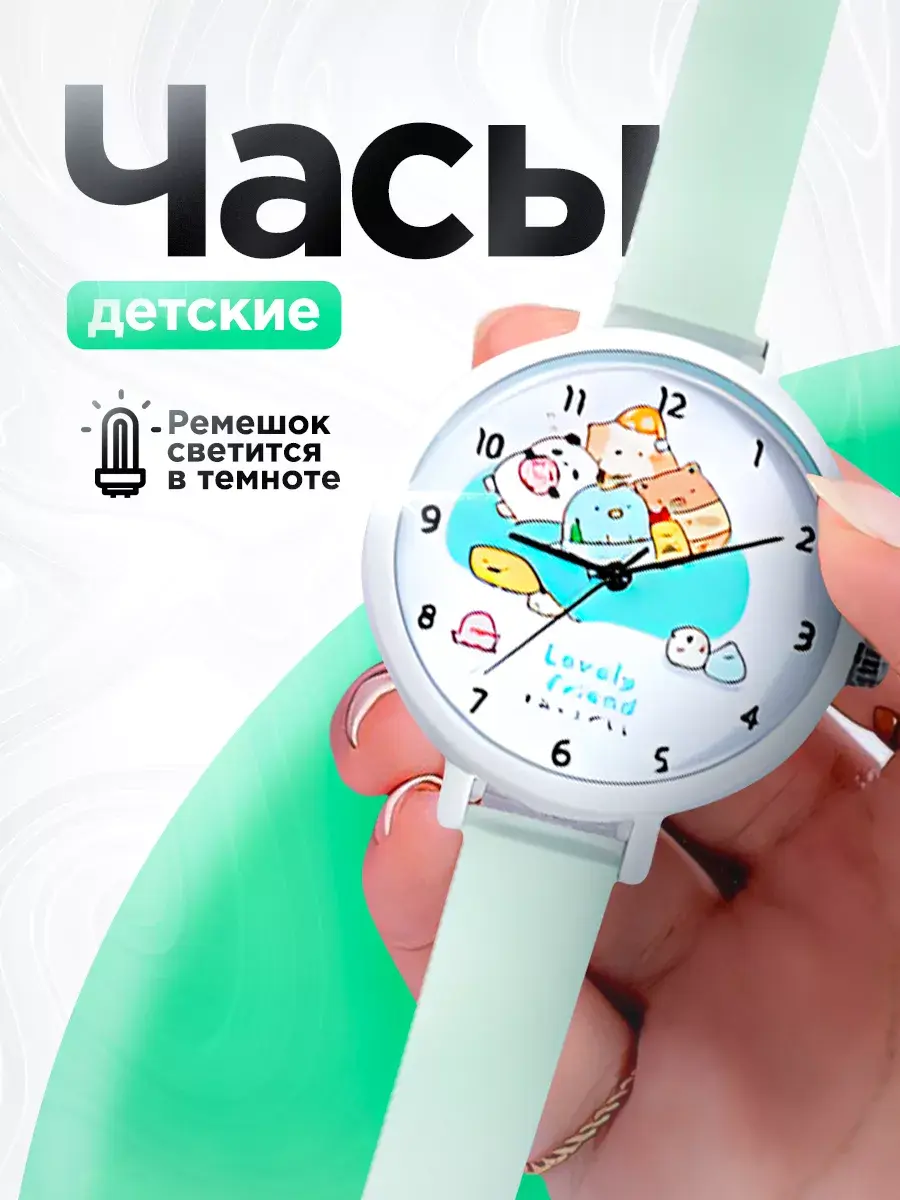 Часы наручные детские - яркий аксессуар, который порадует вашего ребенка, помогут организовать день и всегда быть вовремя. Стильные часики от бренда DinoShop украсят детскую руку девочки. Необычные мягкие силиконовые ремешки, светящиеся в темноте изготовлены из гипоаллергенного материала и безопасны для детского здоровья. Любимые герои из мультиков их мимимишные мордашки на циферблате, не оставят равнодушными вашего ребенка. Циферблат часов с металлическими стрелками и крупными арабскими цифрами. Если знакомство со временем еще рано - малыши оценят их как игрушечные часики. Качественная металлическая застежка надежно фиксирует ремешок на руке и не дает потеряться при ежедневном использовании в школе или детском саду. Часы имеют кварцевый механизм на батарейках. Пластиковый корпус классической круглой формы, стекло изготовлены из прочных материалов. Модные механические часы на руку может носить и подросток, модель прекрасно впишется в образ молодежного стиля. Подарок для девочки идеально подходит на любой праздник, день рождение, 8 марта или выпускной. Оригинальное украшение будет сиять на запястье. Все часы для детей, представленные в ассортименте, имеют футляр для предотвращения их повреждения во время транспортировки и гарантирует доставку аксессуара в полной сохранности.