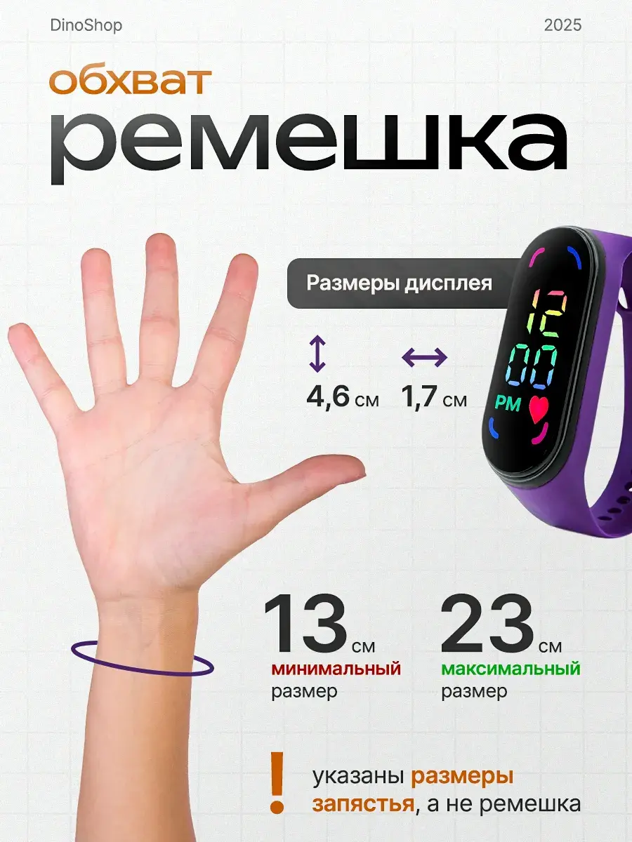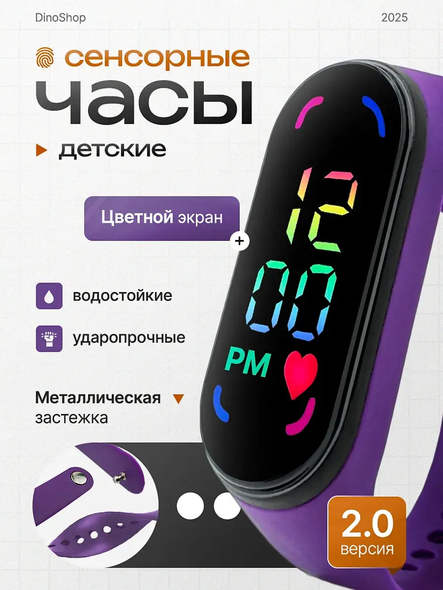 Детские наручные часы для девочек с сенсорным управлением от бренда DinoShop - стильный полезный аксессуар! Электронные часы на руку с цифровым цветным циферблатом - дисплеем отображает время минуты арабскими цифрами в 12 часовом формате, дату с помощью нажатия сенсорной кнопки. Оригинальный влагостойкий ремешок создан из безопасного гипоаллергенного силикона с надежной металлической застежкой без проблем регулируется по длине с помощью отверстий на запястье подростка и исключает их потерю. Это противоударный устойчивый к влаге аксессуар, который в отличие от обычных часов можно мыть не нужно заряжать (на батарейках). Овальные силиконовые браслеты электронных часов наручных подходят для Mi Band. Популярная модель версии 2.0 идеальна для дошкольников и школьников, которые хотят выглядеть стильно каждый день. Спортивные походные детские часы для девочки, детские часы для мальчиков подойдут для активного отдыха - бег фитнес туризм или повседневной носки дома учебы в школе. Классические умные часы ударопрочные не боятся брызг воды. Универсальные необычные украшения с водонепроницаемым корпусом - отличный подарок для детей которые дополнят модный современный образ на прогулке. Часики станут приятным презентом дочери сестре внучке племяннице на праздник день рождения выпускной ученику 1 класс, и др.