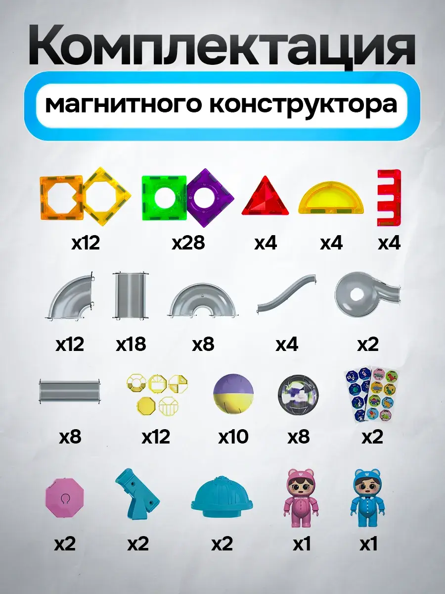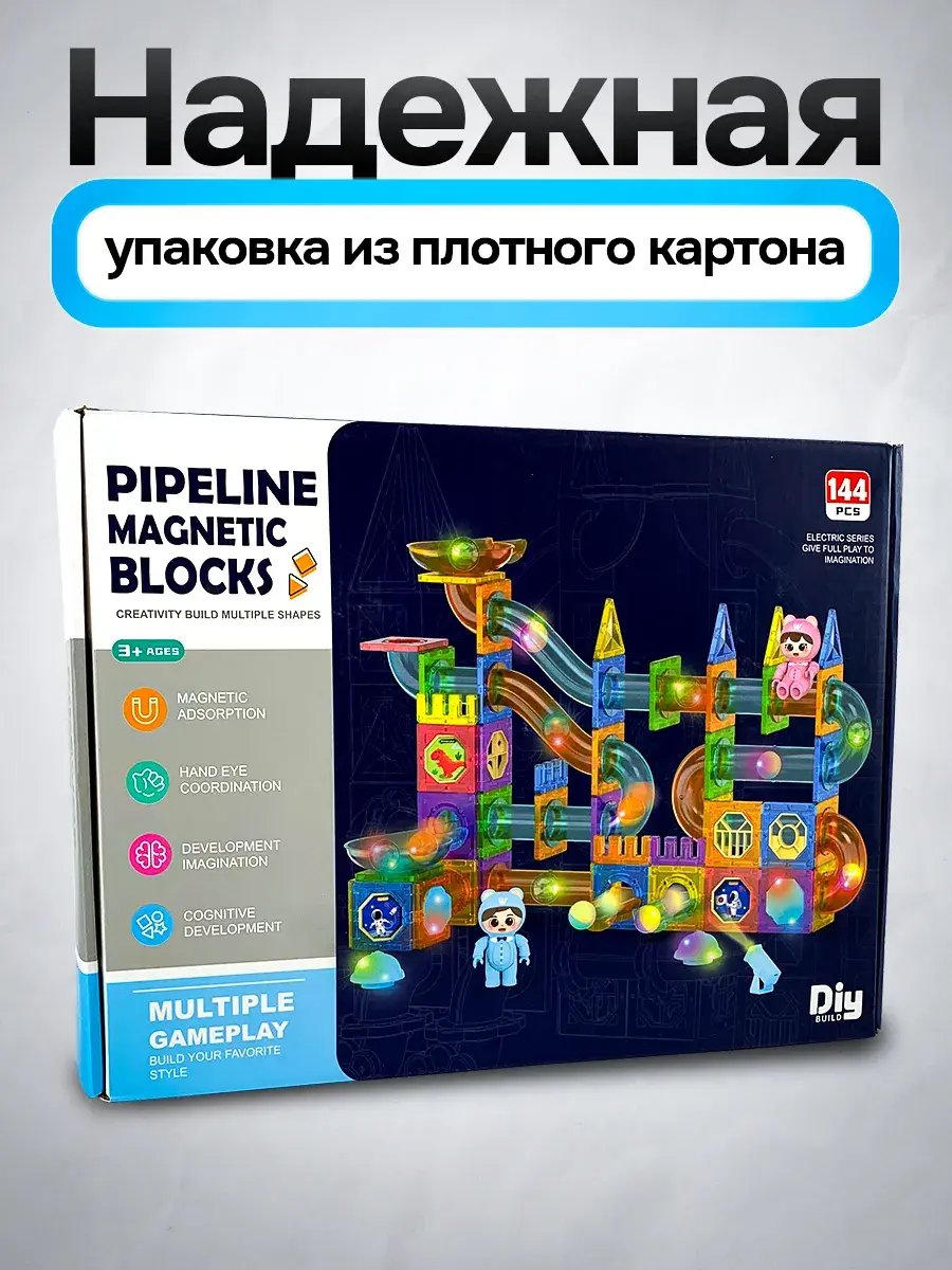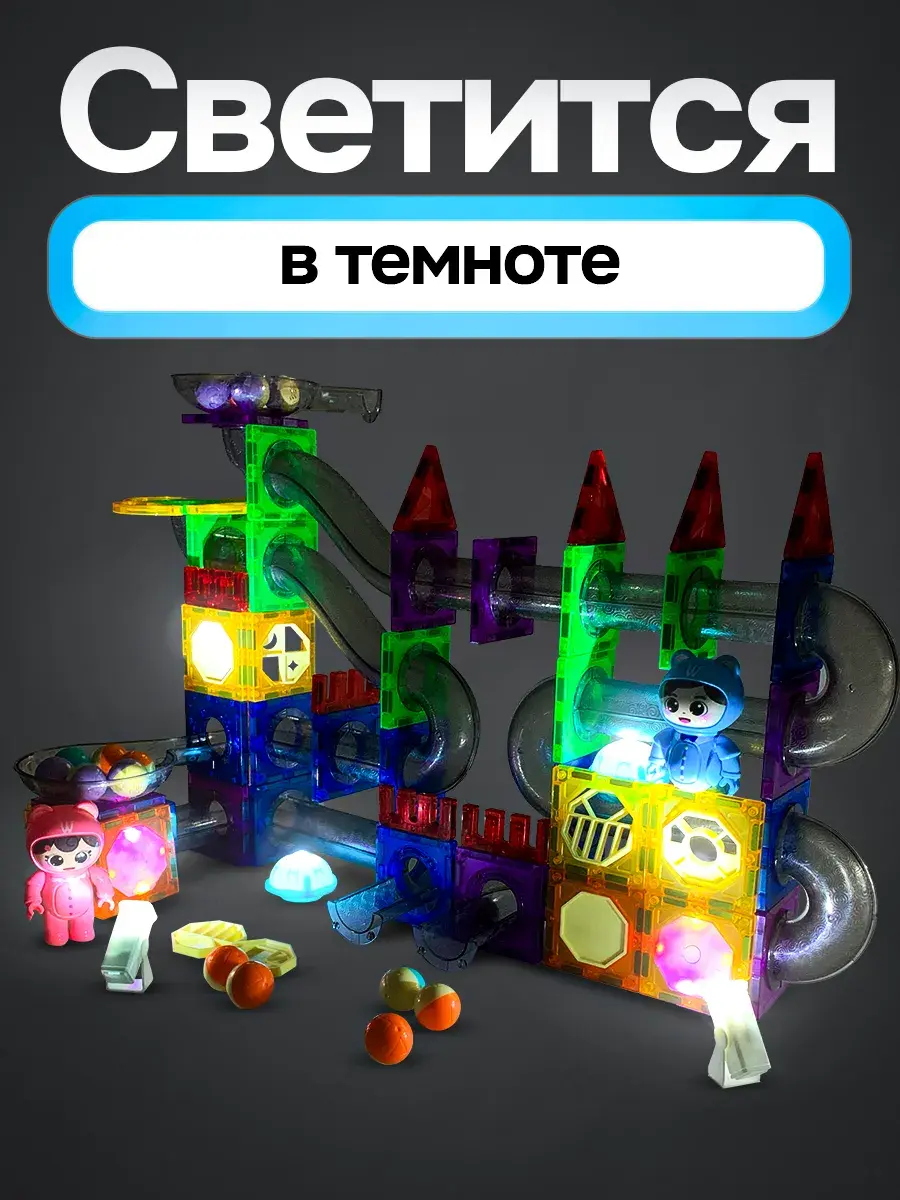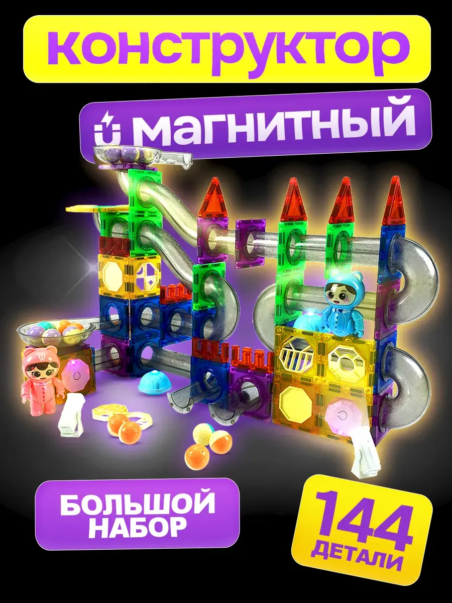 Представляем вашему вниманию уникальный светящийся магнитный конструктор для малышей, который станет идеальным подарком на день рождения, 8 марта и просто без повода! Этот детский конструктор, состоящий из 144 элементов, откроет перед вашим ребенком мир бесконечных возможностей. Создавайте захватывающий лабиринт горку с шариками, всевозможные замки и фигуры, используя разноцветные и светящиеся крупные детали, которые придают игре особую магию. В комплект входят подвижные фигурки и набор наклеек для еще большей реализации творческого потенциала вашего малыша.