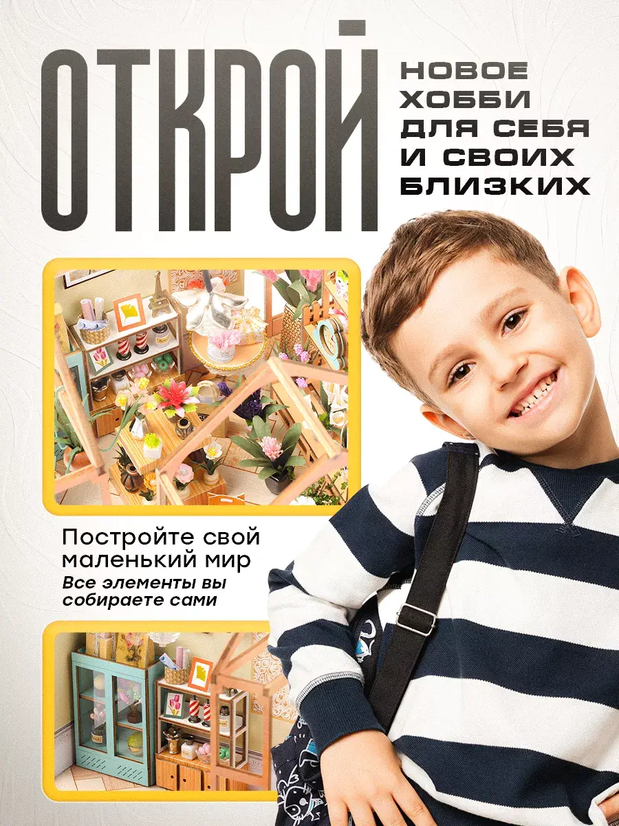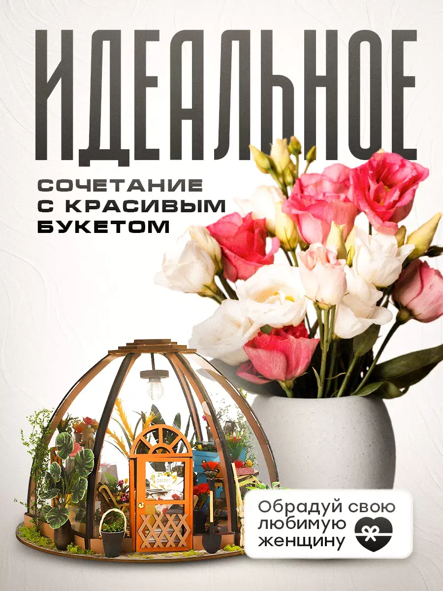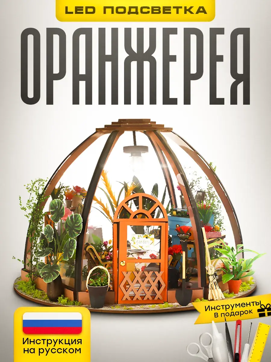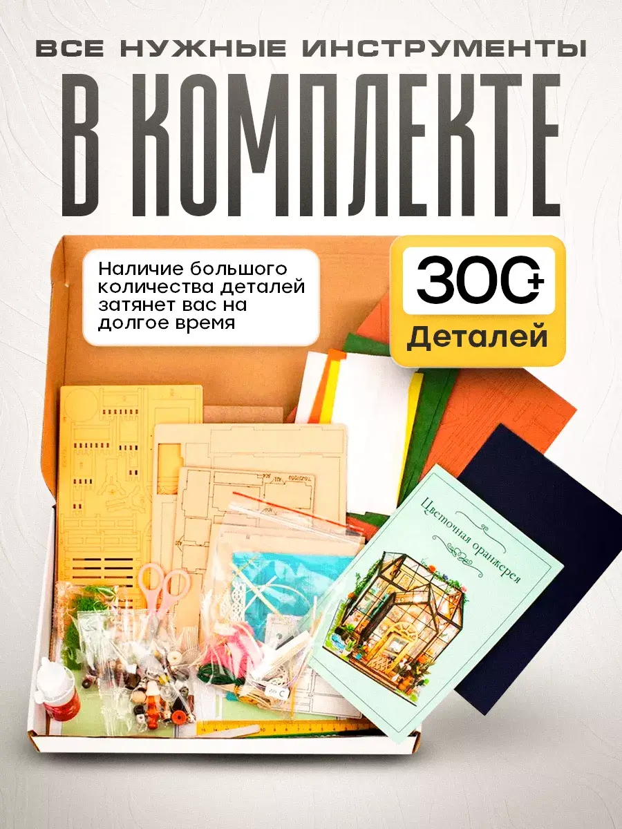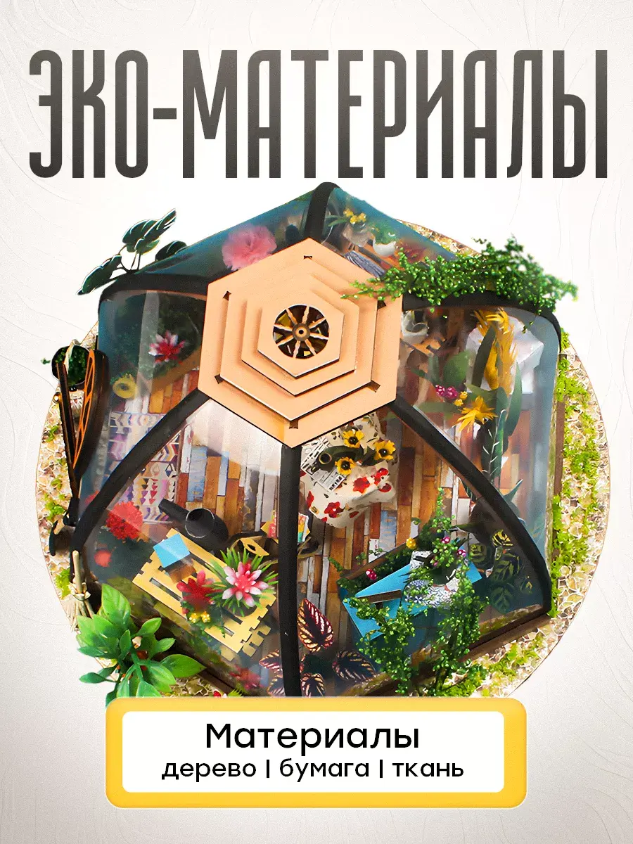 Набор для творчества Оранжерея станет идеальным подарком от бренда DinoShop для девочки. Этот японский румбокс покоряет сердца всех детей и взрослых. С его помощью можно создать миниатюрный домик или цветочную комнату, а встроенная подсветка придаст уют вашему дому, превращая набор в великолепный ночник. Интерьерный конструктор развивает творческие способности, усидчивость и мелкую моторику. Он надолго отвлечет вашего ребенка от гаджетов и будет способствовать совместному времяпрепровождению. Его можно собирать как самостоятельно, так и вместе с детьми или друзьями. Набор включает в себя все необходимые детали и пошаговую инструкцию на русском языке. Все элементы сборной модели удобно разложены по пакетам и подписаны, что упрощает сборку. Кроме того, необходимый для сборки набор инструментов мы предлагаем вам в подарок. В комплект mini house оранжереи входят деревянные и картонные детали, лоскутки ткани, бусинки, заклепки и светодиоды с выключателем. С помощью ножниц и клея вы сможете собрать детализированный интерьер комнаты, а завершающим штрихом станет проводка электричества для светильников, работающих от батарейки. Roombox упакован в красивую подарочную коробку, что делает его отличным подарком на любой праздник, День рождения девушке подруге подростку. Подарите радость творчества и волшебство светящегося сада своим близким с наши набором для творчества Оранжерея.