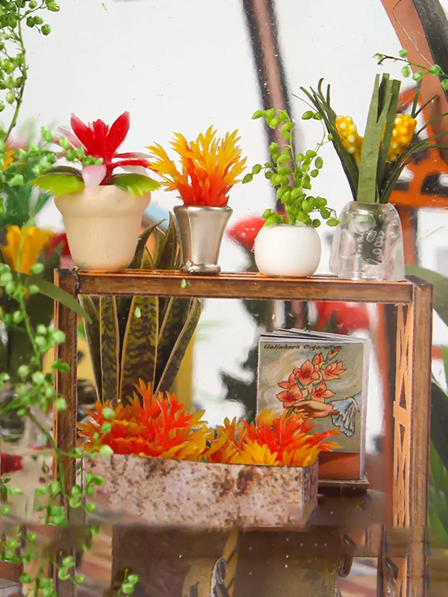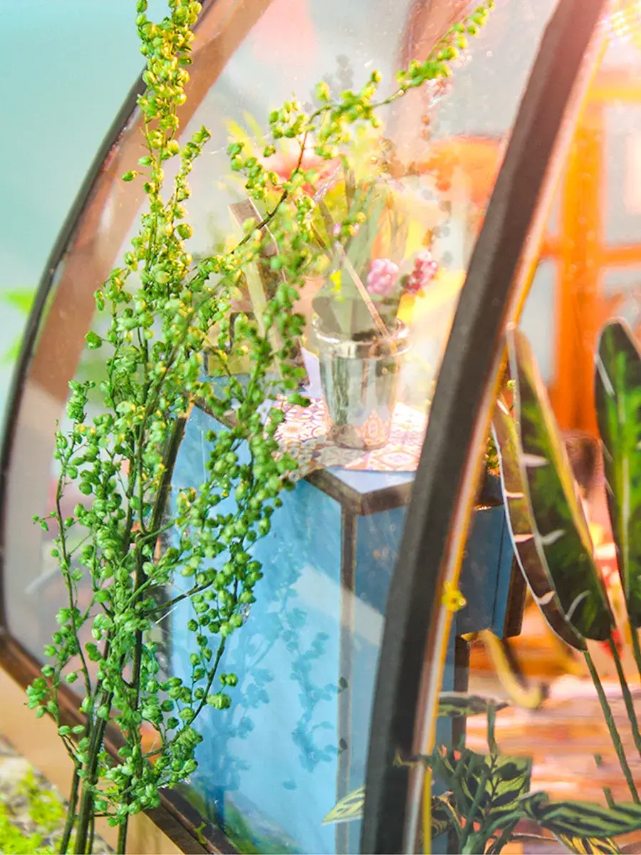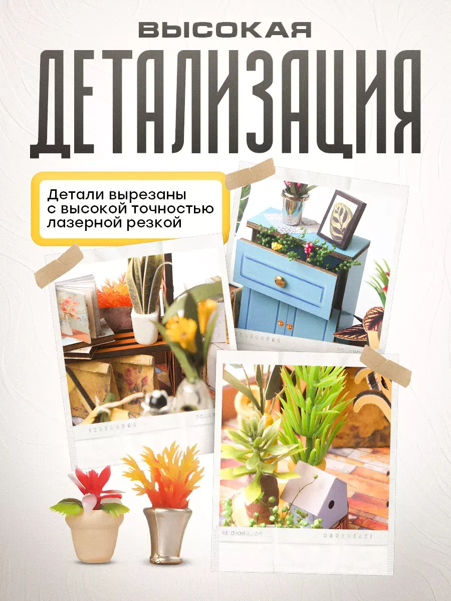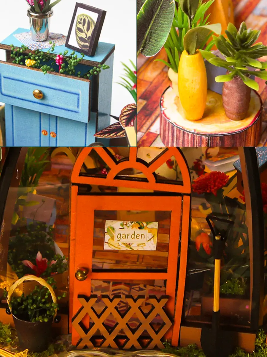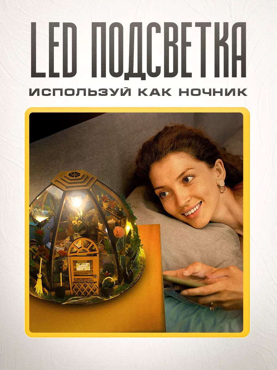 Набор для творчества Оранжерея станет идеальным подарком от бренда DinoShop для девочки. Этот японский румбокс покоряет сердца всех детей и взрослых. С его помощью можно создать миниатюрный домик или цветочную комнату, а встроенная подсветка придаст уют вашему дому, превращая набор в великолепный ночник. Интерьерный конструктор развивает творческие способности, усидчивость и мелкую моторику. Он надолго отвлечет вашего ребенка от гаджетов и будет способствовать совместному времяпрепровождению. Его можно собирать как самостоятельно, так и вместе с детьми или друзьями. Набор включает в себя все необходимые детали и пошаговую инструкцию на русском языке. Все элементы сборной модели удобно разложены по пакетам и подписаны, что упрощает сборку. Кроме того, необходимый для сборки набор инструментов мы предлагаем вам в подарок. В комплект mini house оранжереи входят деревянные и картонные детали, лоскутки ткани, бусинки, заклепки и светодиоды с выключателем. С помощью ножниц и клея вы сможете собрать детализированный интерьер комнаты, а завершающим штрихом станет проводка электричества для светильников, работающих от батарейки. Roombox упакован в красивую подарочную коробку, что делает его отличным подарком на любой праздник, День рождения девушке подруге подростку. Подарите радость творчества и волшебство светящегося сада своим близким с наши набором для творчества Оранжерея.