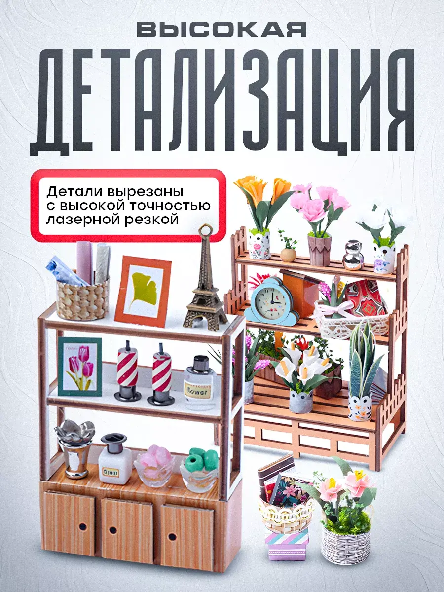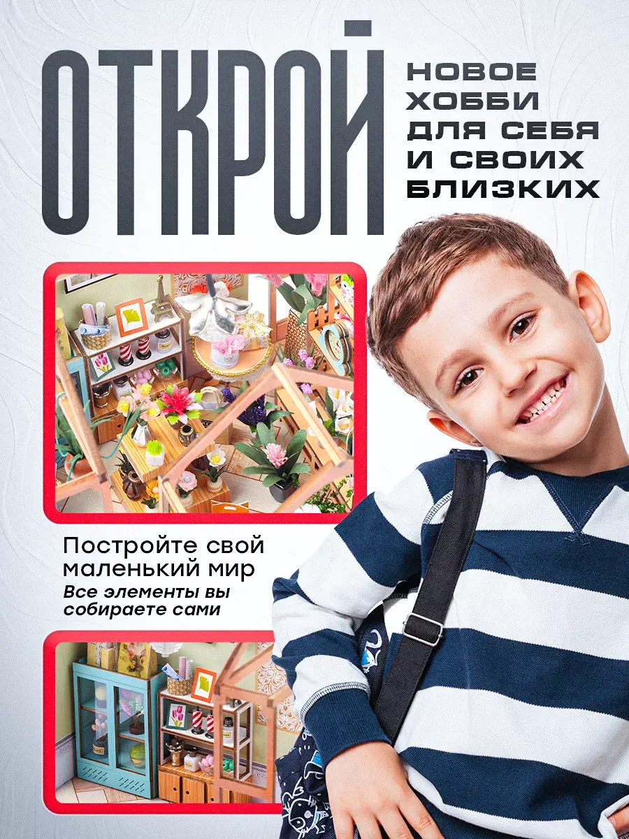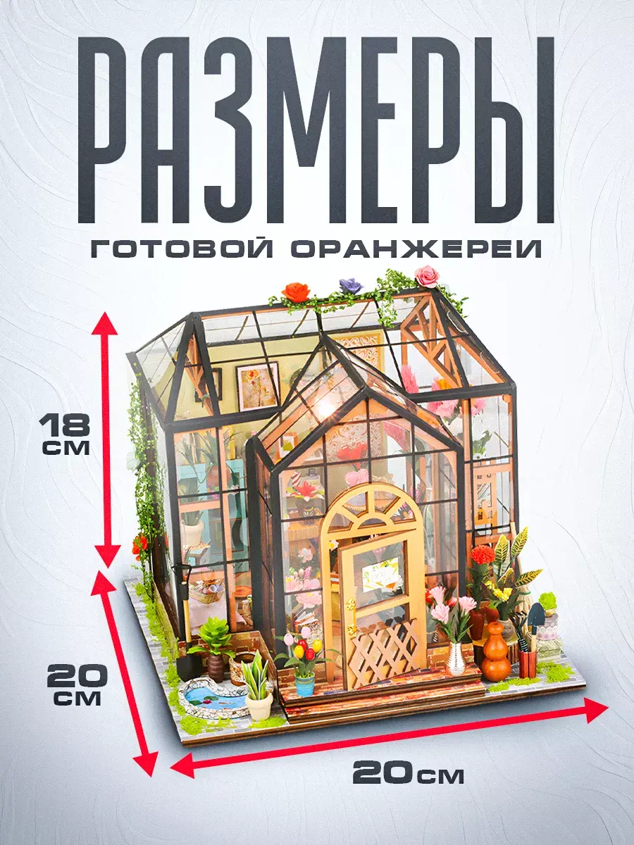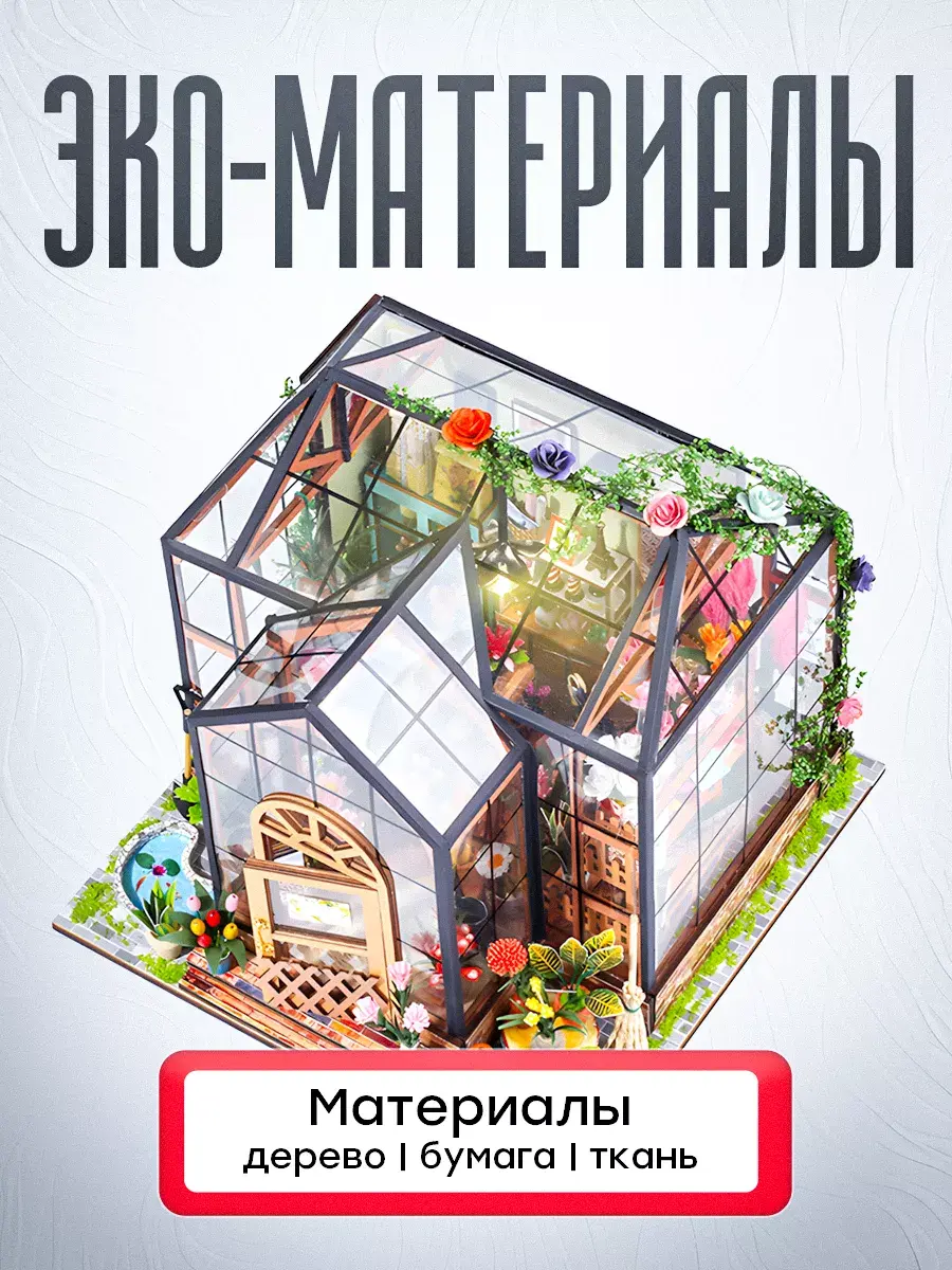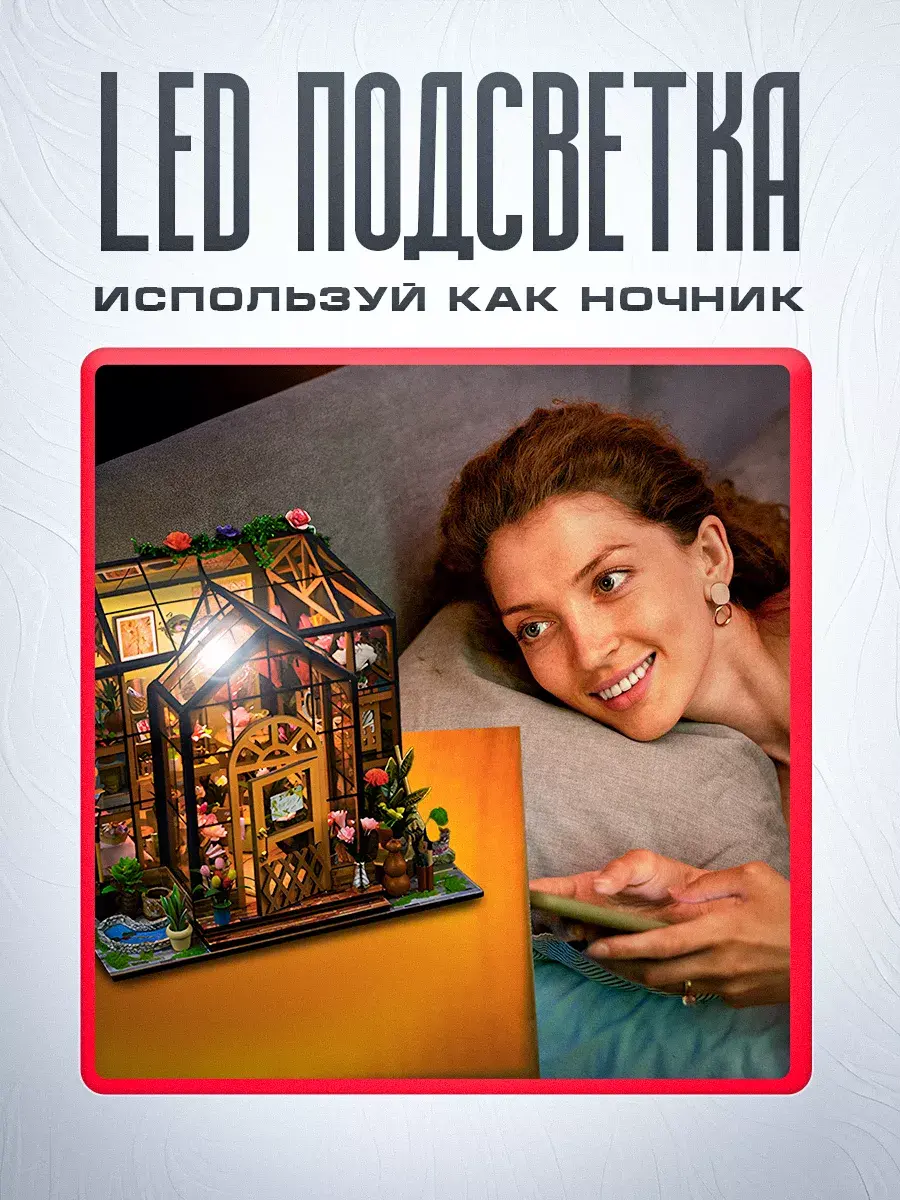 Набор для хобби и творчества Оранжерея станет идеальным подарком от бренда DinoShop для девочки. Этот японский румбокс покоряет сердца всех детей и взрослых. С его помощью можно создать миниатюрный домик или цветочную комнату, а встроенная подсветка придаст уют вашему дому, превращая набор в великолепный ночник. Интерьерный конструктор развивает творческие способности, усидчивость и мелкую моторику. Он надолго отвлечет вашего ребенка от гаджетов и будет способствовать совместному времяпрепровождению. Его можно собирать как самостоятельно, так и вместе с детьми или друзьями. Набор включает в себя все необходимые детали и пошаговую инструкцию на русском языке. Все элементы сборной модели удобно разложены по пакетам и подписаны, что упрощает сборку. Кроме того, необходимый для сборки набор инструментов мы предлагаем вам в подарок. В комплект mini house оранжереи входят деревянные и картонные детали лоскутки ткани заклепки и светодиоды с выключателем. С помощью ножниц и клея вы сможете собрать детализированный интерьер комнаты, а завершающим штрихом станет проводка электричества для светильников, работающих от батарейки. Roombox упакован в красивую подарочную коробку, что делает его отличным подарком на любой праздник День рождения.