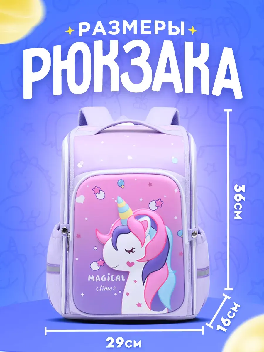 Рюкзак школьный от бренда DinoShop вдохновит девочку первоклассницу на отличную учебу и подарит прекрасное настроение, ведь на нем изображен милый любимый герой единорог, а яркие сердечки звездочки не оставят равнодушной ни одну принцессу. Ортопедическая жесткая спинка мягкие широкие лямки анатомической формы с возможностью регулировки длины позволяют распределить равномерно нагрузку на спину и плечи для здоровой осанки ребенка. Рюкзак для девочки идеальный подарок первокласснику ко дню знаний 1 сентября в школу подходит для малышей 1 и более старших до 3 4 классов. Легкий повседневный рюкзачок достаточно вместительный и эргономичный имеет большое отделение вместив папки формата а4 книги ноутбук, органайзер для ручек пенала карандашей и других принадлежностей канцелярии. Ранец школьный для девочки с двумя боковыми карманами со светоотражающими элементами можно положить первоклашке бутылку с водой напитками телефон, большой карман спереди уместит другие необходимые предметы мелочи. Крепкая ручка застежки надежная молния прослужат весь сезон осень зима весна. Замечательный вариант на лето при хождении на кружки рисование лепка и др развивашки. Красивый портфель школьный для девочки с пони непромокаемый водонепроницаемый изготовлен из износостойкой ткани полиэстер дает с легкостью проводить чистку и уход, яркие цвета рисунка сохранятся после множества стирок. Стильный туристический рюкзак для поездок путешествий чтобы хранить нужные аксессуары игрушки. Многофункциональный эстетичный подойдет как для школьника первый класс, тренировок детей занимающихся спортом гимнастика танцы так и городских прогулок. Рюкзак для начальных классов позволит выделиться среди одноклассников и станет любимой сумкой вашей дочки или внучки. Рюкзак с единорогом отлично подойдет для подарка как школьнику, так и дошкольнику. Чаще наши детские рюкзаки выбирают на подарок девочке от 5 до 10 лет.