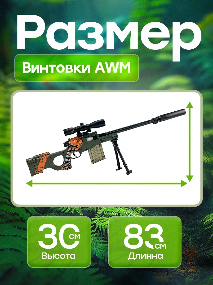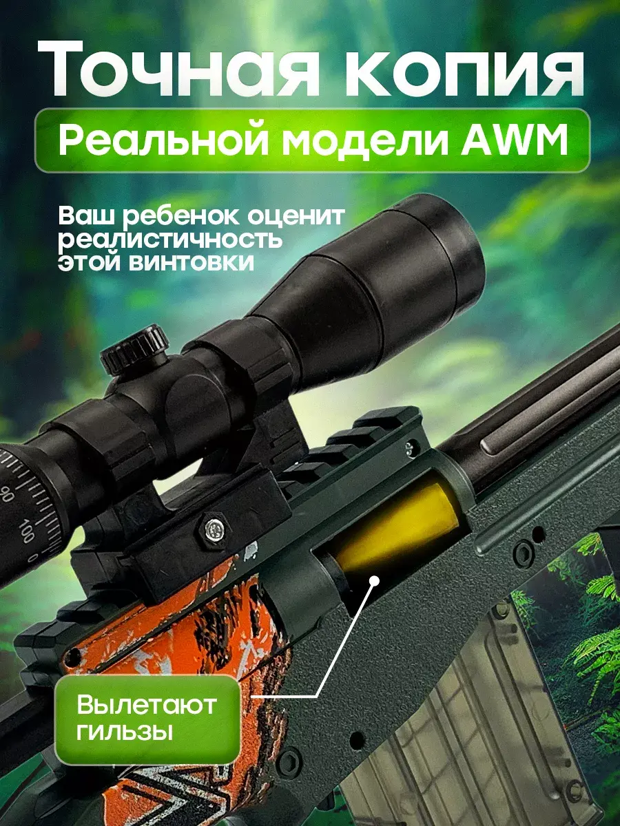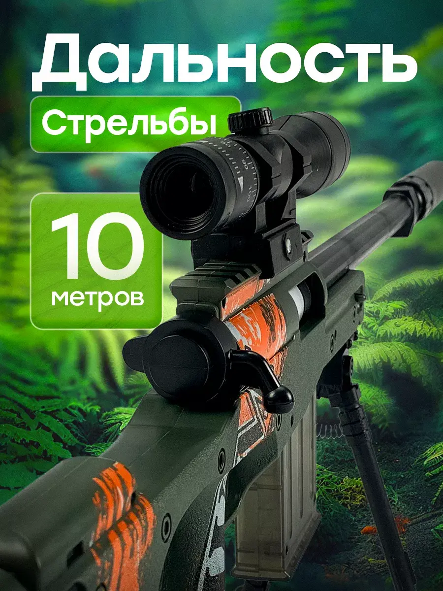 Крутая детская снайперская винтовка с мягкими пульками станет идеальным подарком для детей с 3 лет. Это уменьшенная копия настоящей снайперки AWM. Игрушечная винтовка является совершенно безопасной, из пушки можно стрелять мягкими пулями с присосками и без них. Автомат с глушителем, магазином и сошками, подставкой - винторез с звуковым эффектом предназначена для игры в меткого стрелка. АВМ имеет надежные крепления и отличается высоким качеством деталей, выстрел напоминает звук лопнувшего шарика. Оптический прицел добавляет реализма, позволяя улучшить свои навыки точной стрельбы. Длина ружья 83 см. Набор патронов в комплекте. Детская воздушка имеет мощный механизм, выстрел осуществляется за счет сжатого воздуха который формируется после взвода затвора, позволяет стрелять на расстояние до 10-15 метров. Крутой автомат не оставит равнодушными фанатов шутеров кс го и он круче чем любой автоматический пулемет или пистолет с пульками. Уникальная игровая винтовка AWP, резинкострел создан специально для мальчиков. Детское ружье СВД хороший вариант для тира и стрельбы с пластмассовыми патронами. После каждого перезаряда, использованная гильза эффектно выпадает вправо, как и у настоящей винтовки. Винтовка снайперская с прицелом прекрасно подойдет в качестве сюрприза на день рождения и станет отличным подарком от бренда DinoShop для вашего ребенка, сына, племянника, внука. Закажите прямо сейчас и добавьте в свою жизнь много приятных моментов, вызывающих самые яркие эмоции!