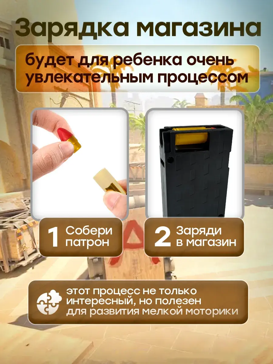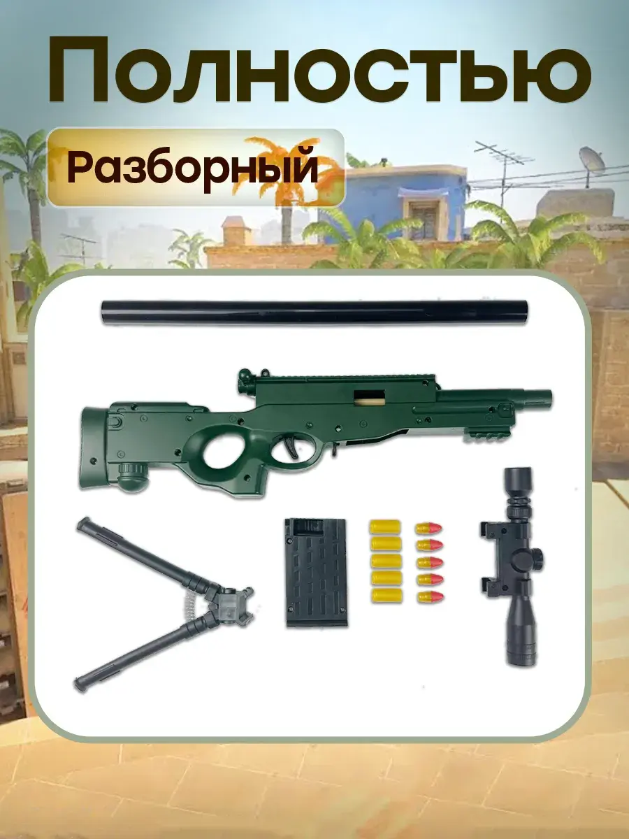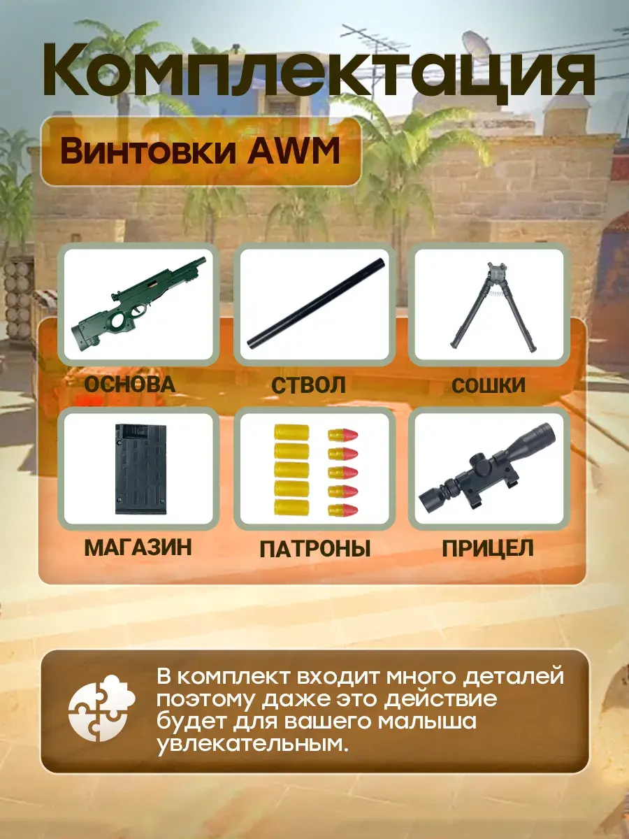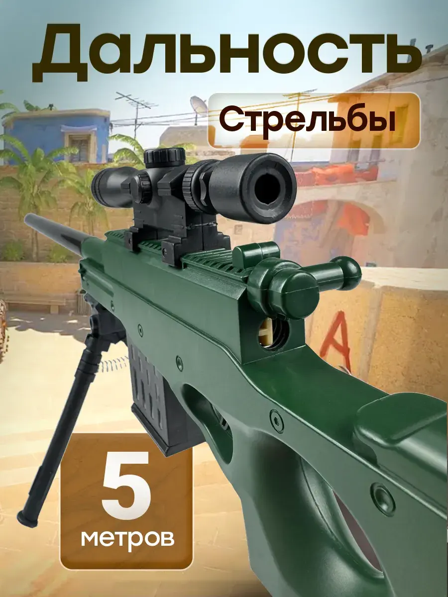 Крутая детская снайперская винтовка с пульками станет идеальным подарком для детей с 3 лет. Это уменьшенная копия настоящей снайперки AWM. Игрушечная винтовка является совершенно безопасной для детей, из пушки можно стрелять пулями. Автомат с глушителем, магазином и сошками, подставкой. Винторез с звуковым эффектом предназначена для игры в меткого стрелка. АВМ имеет надежные крепления и отличается высоким качеством деталей, выстрел напоминает звук лопнувшего шарика. Оптический прицел добавляет реализма, позволяя улучшить свои навыки точной стрельбы. Длина ружья 67 см. Набор патронов в комплекте. Детская воздушка имеет мощный механизм, выстрел осуществляется за счет сжатого воздуха который формируется после взвода затвора. Крутой автомат не оставит равнодушными фанатов шутеров кс го и он круче чем любой пулемет или пистолет с пульками. Уникальная игровая винтовка AWP, резинкострел создан специально для мальчиков. Детское ружье СВД хороший вариант для тира и стрельбы с пластмассовыми патронами. После каждого перезаряда, использованная гильза эффектно выпадает вправо, как и у настоящей винтовки. Винтовка снайперская с прицелом прекрасно подойдет в качестве сюрприза на день рождения и станет отличным подарком от бренда DinoShop для вашего ребенка, сына, племянника, внука. Закажите прямо сейчас и добавьте в свою жизнь много приятных моментов, вызывающих самые яркие эмоции!