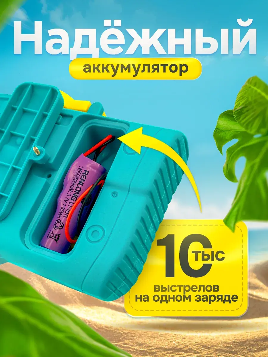 Водяной автоматический пистолет от бренда DinoShop - это лучшая летняя игрушка для активных и подвижных детей - как для мальчиков, так и для девочек! Электрическое детское оружие позволяет затевать интересные водные игры и занимать делом не только подростков, но и взрослых. Водной бластер, nerf выполнен из гипоаллергенного безопасного пластика, который выдерживает высокие температуры, что особенно важно в жаркие летние дни. Автомат водный устроен таким образом, что можно прикрутить бутылку с водой в специальное отверстие, увеличив объем, либо залить жидкость внутрь. Емкость встроенного резервуара водяного автомата составляет 450 мл. Большая дальность стрельбы - 12 метров, обеспечивается за счет мощного помпового механизма. Внутри имеется съемная аккумуляторная батарейка Li-ion 18650. Что еще нужно детишкам в теплые погожие деньки на каникулах? Времяпровождение на свежем воздухе у бассейна на даче или на пляже, физическая активность и азарт. С помощью такого игрушечного оружия родители отлично проведут время со своими ребятишками. Отправьте своего ребенка в захватывающее приключение с этим увлекательным водным пистолетом! Травматизм полностью исключен при использовании такой винтовки бластера. Легкий запуск осуществляется одним нажатием. Корпус нашего электрического водного автомата защищен силиконовой вставкой от попадания влаги. Большой автомат с помпой - это отличный детский подарок на любой повод, например, выпускной в детском саду или начальной школе, 9 мая, день рождения 4, 5, 6 или 7 лет, 10 лет, а также просто так - порадовать свое чадо!