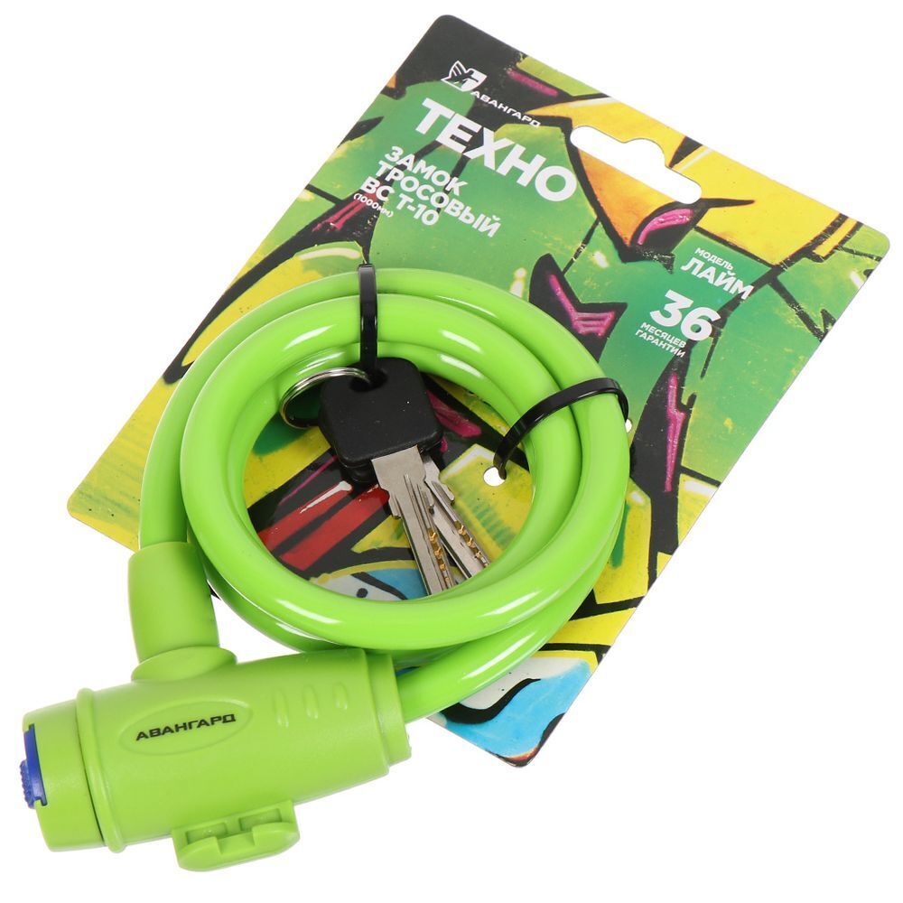 Замок велосипедный тросовый, Авангард, Техно, 1000 мм, лайм ВС-Т10, 7323