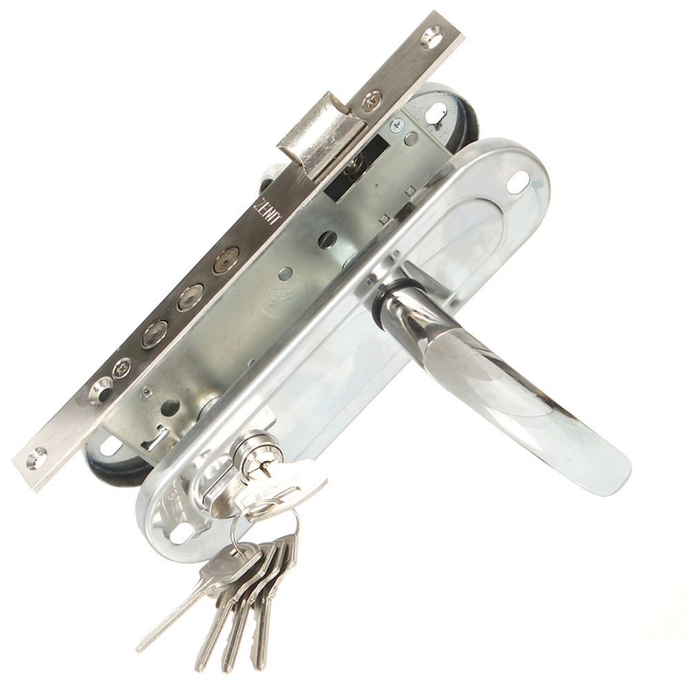 Врезной замок с ручками и цилиндровым механизмом 70 мм (готовый комплект). Межосевое расстояние 85 мм. По посадочным размерам совпадает с замками китайского производства с аналогичным межосевым расстоянием. Декоративное покрытие замка и цилиндра - Никель. 5 ключей в комплекте. Упаковка - картонная коробка. Подходит для левых и правых дверей.