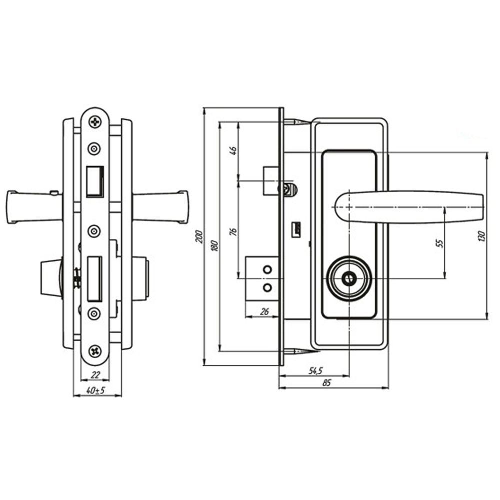 удаление ключевого отверстия (бэксет) замка: 54,5 мм.