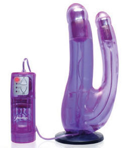 Фиолетовый двойной страпон с вибратором, 19 см