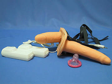 Женские трусики с двумя фаллопротезами и с двумя вибраторами