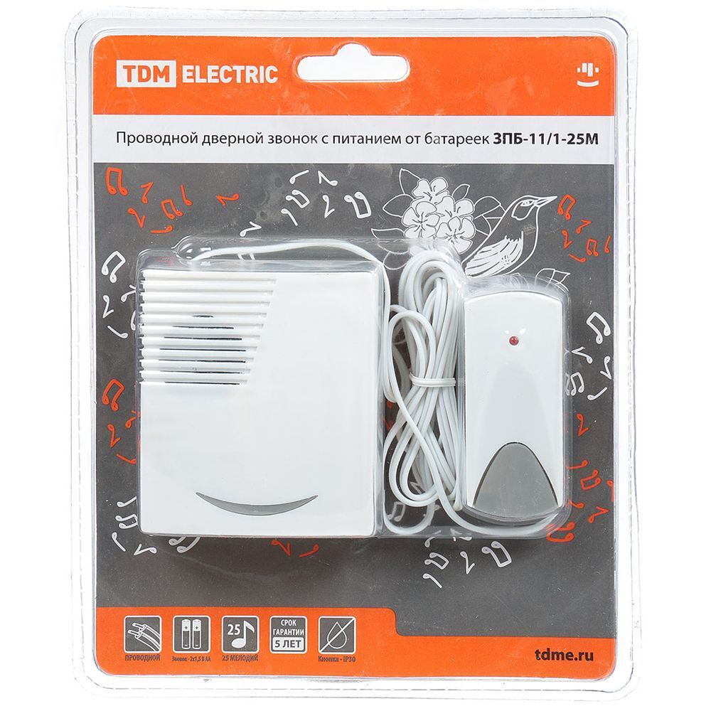 Звонок питается либо от электрической сети, либо от пальчиковых батареек типа АА.